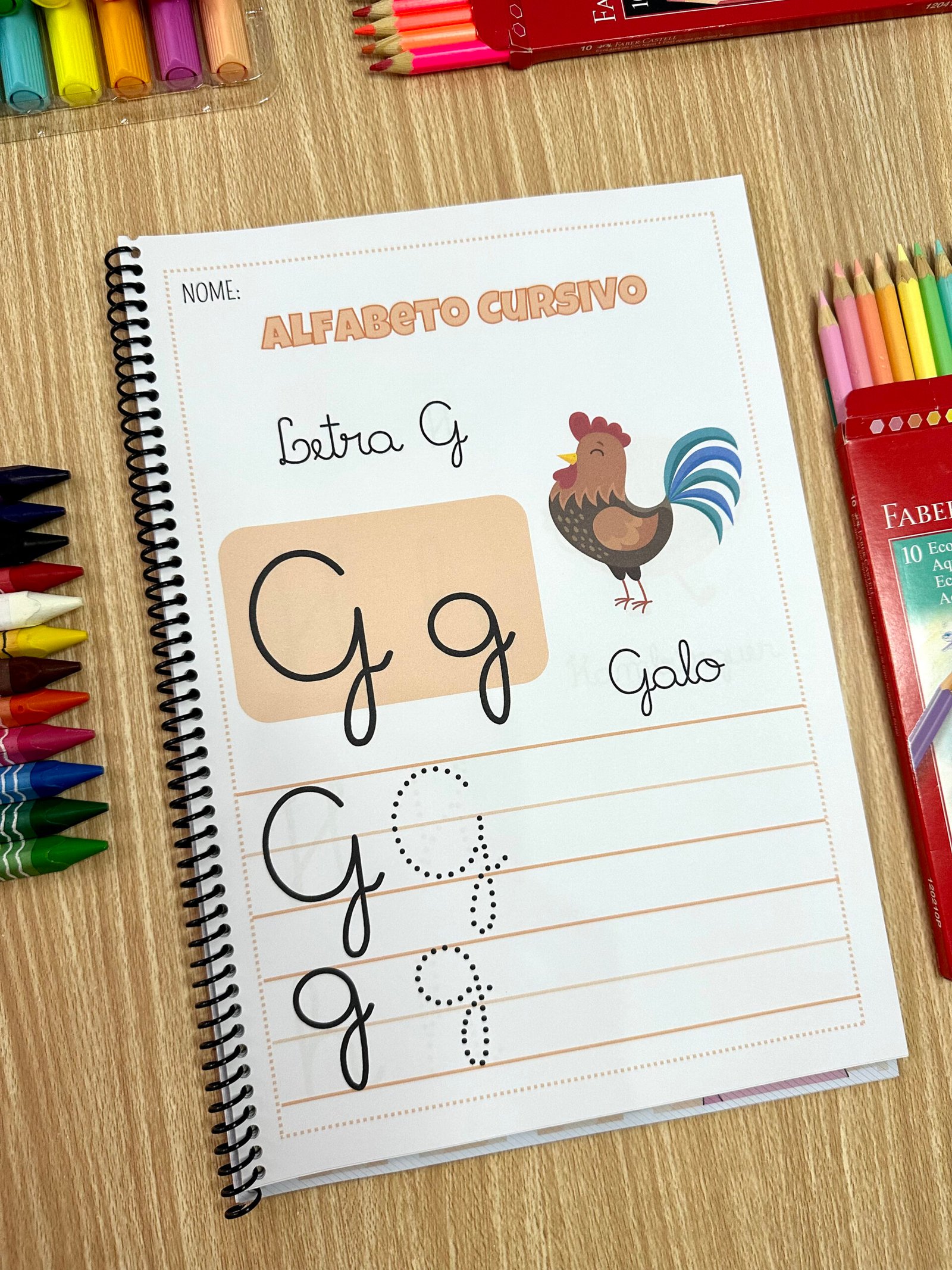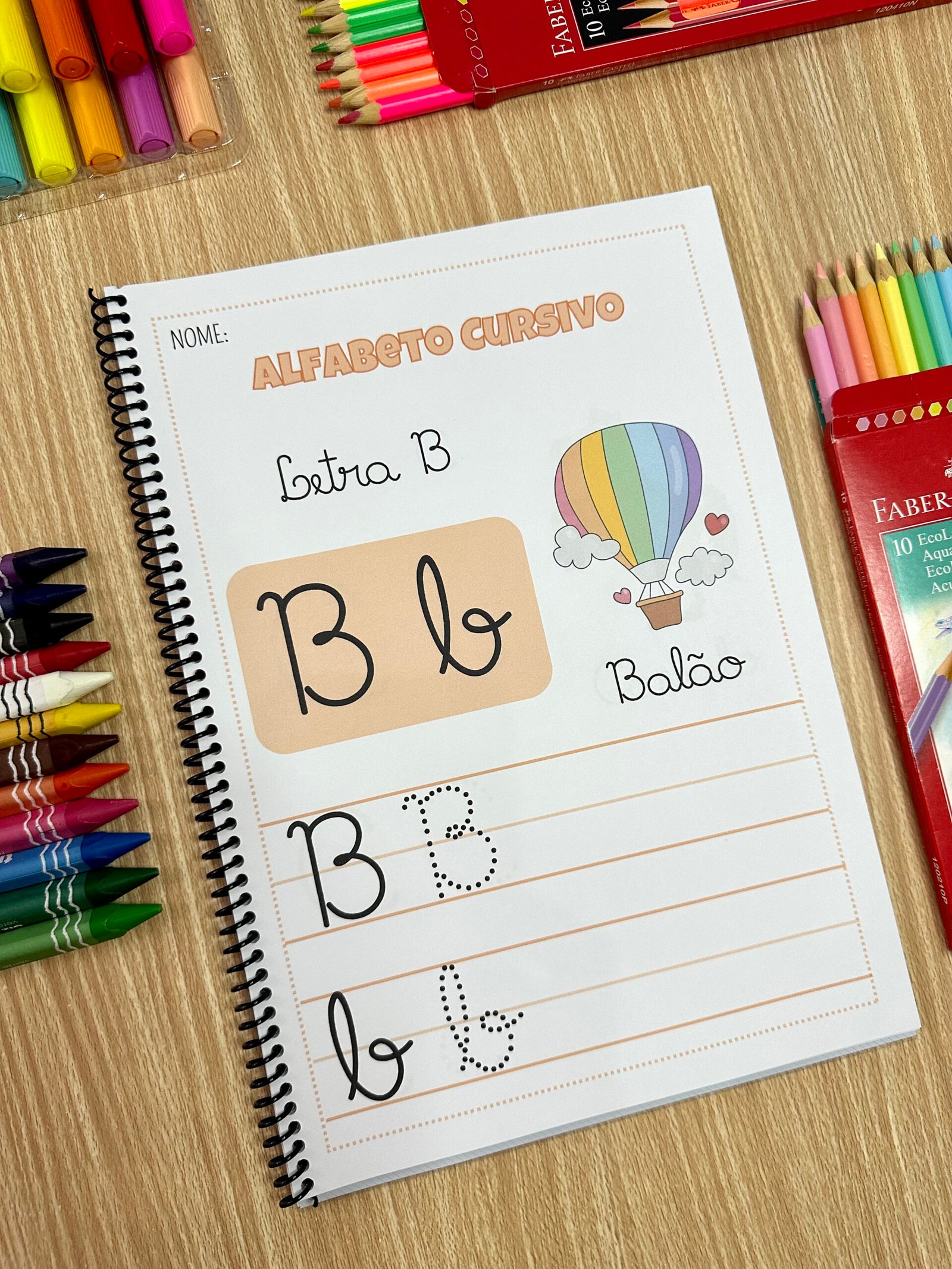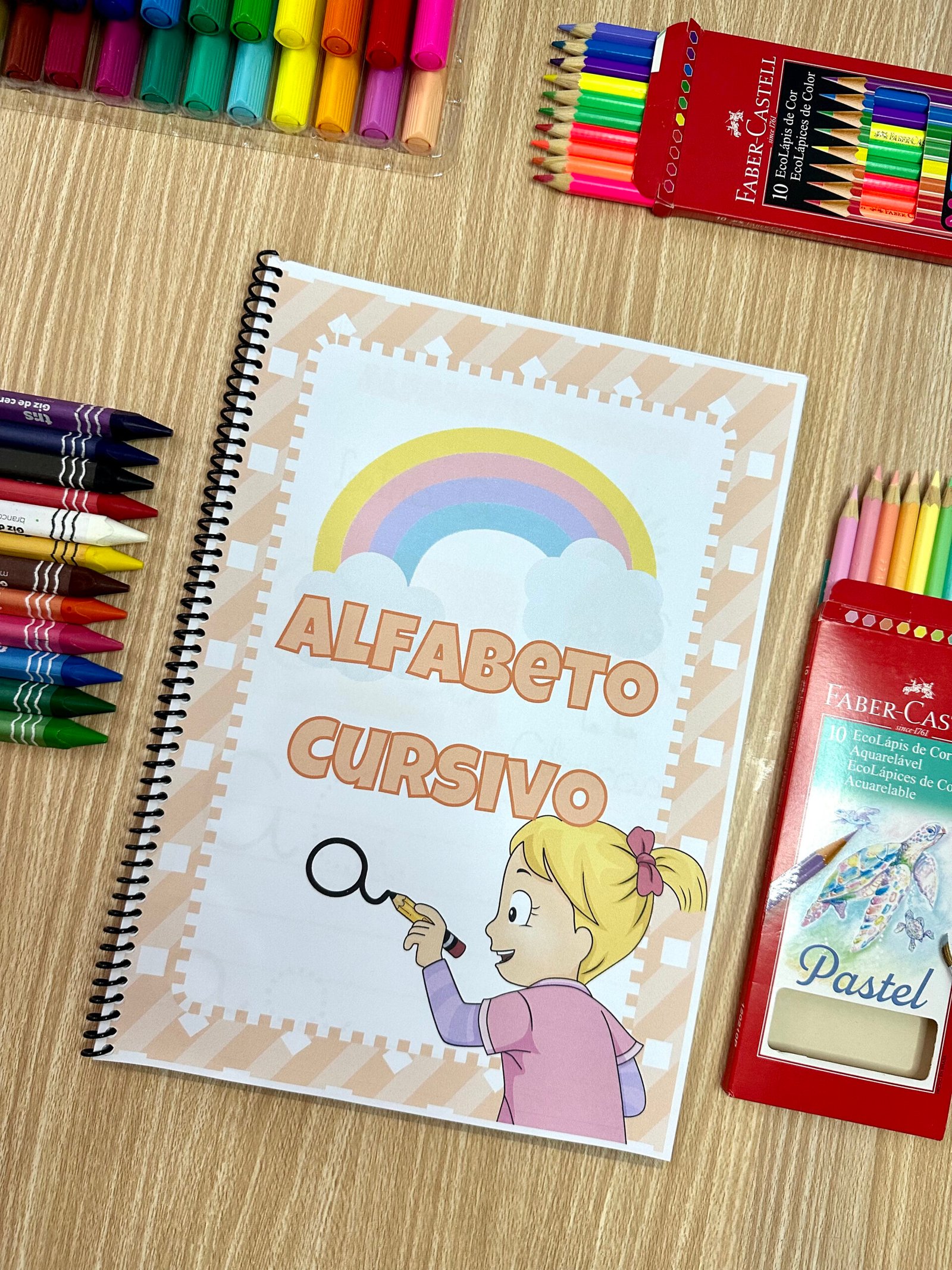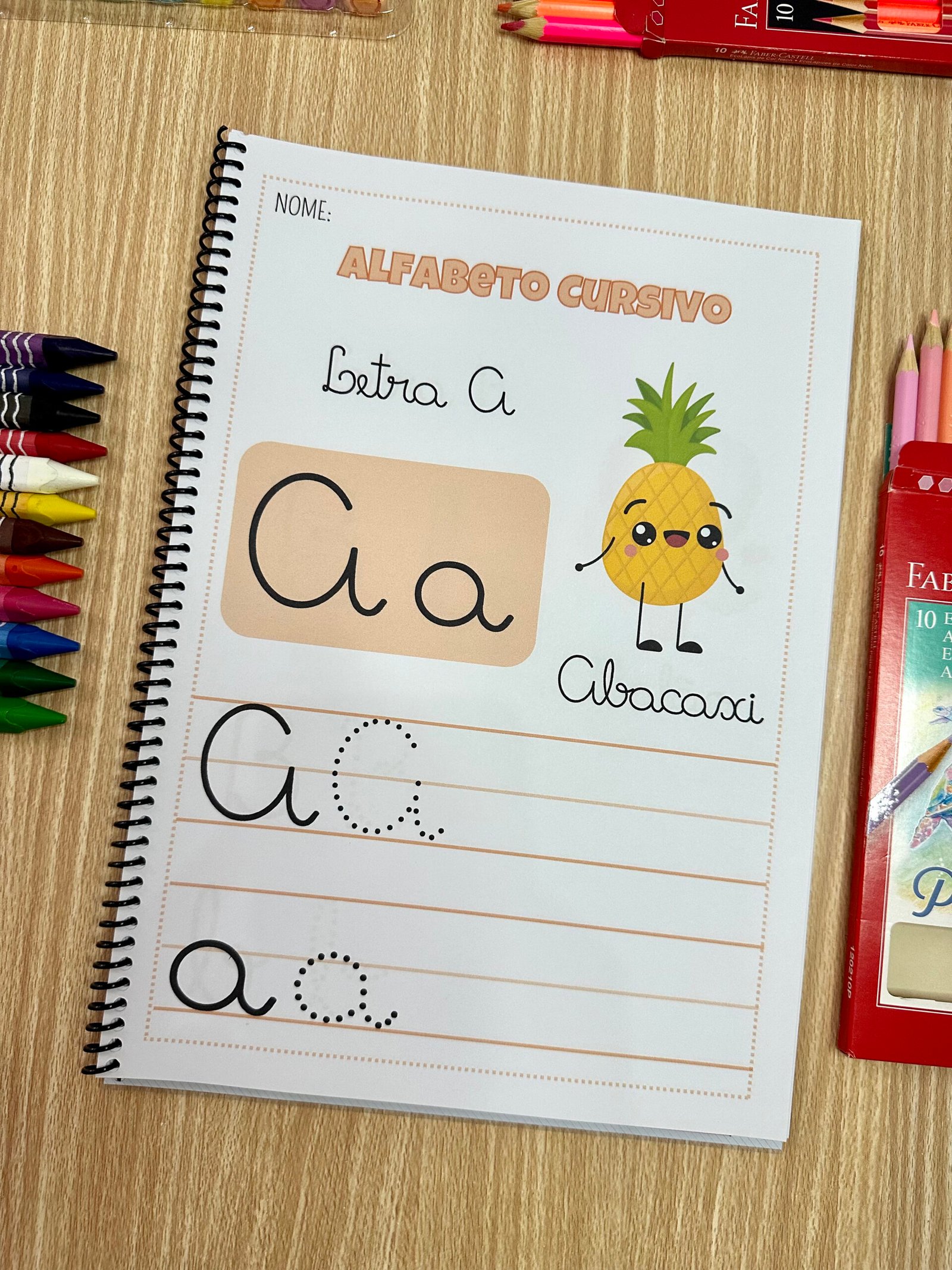 As atividades trabalham o traçado da letra cursiva, auxiliam no desenvolvimento da coordenação motora fina e reconhecimento das letras em formato cursivo.