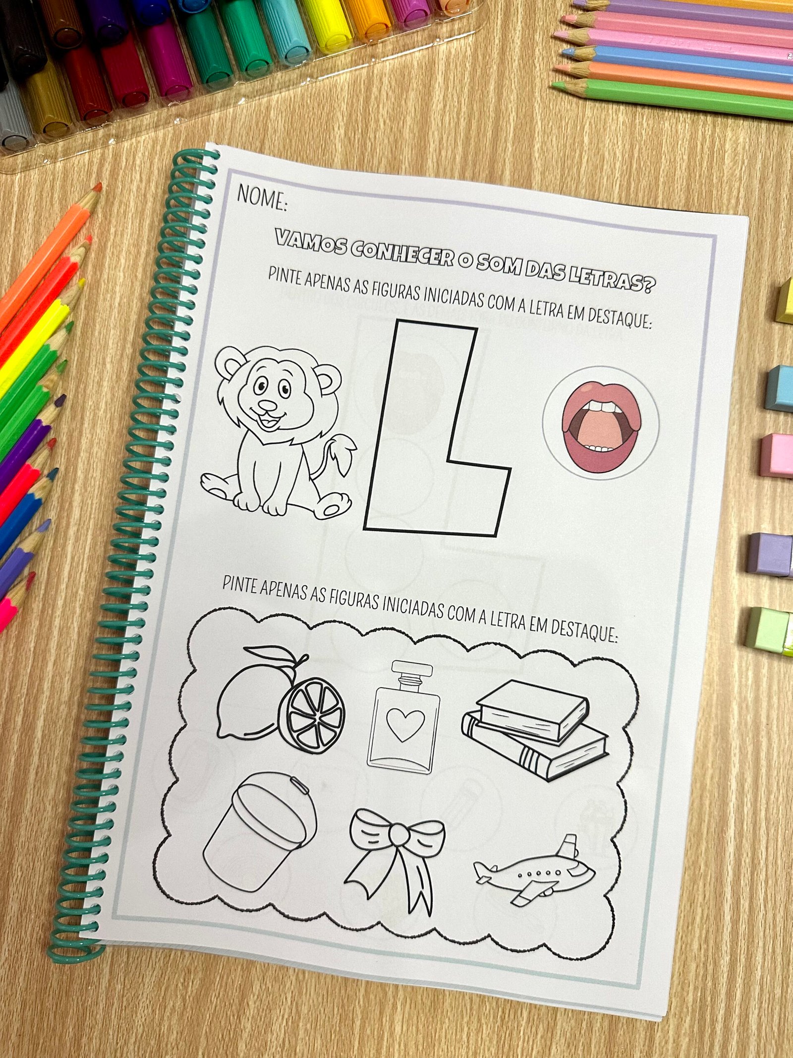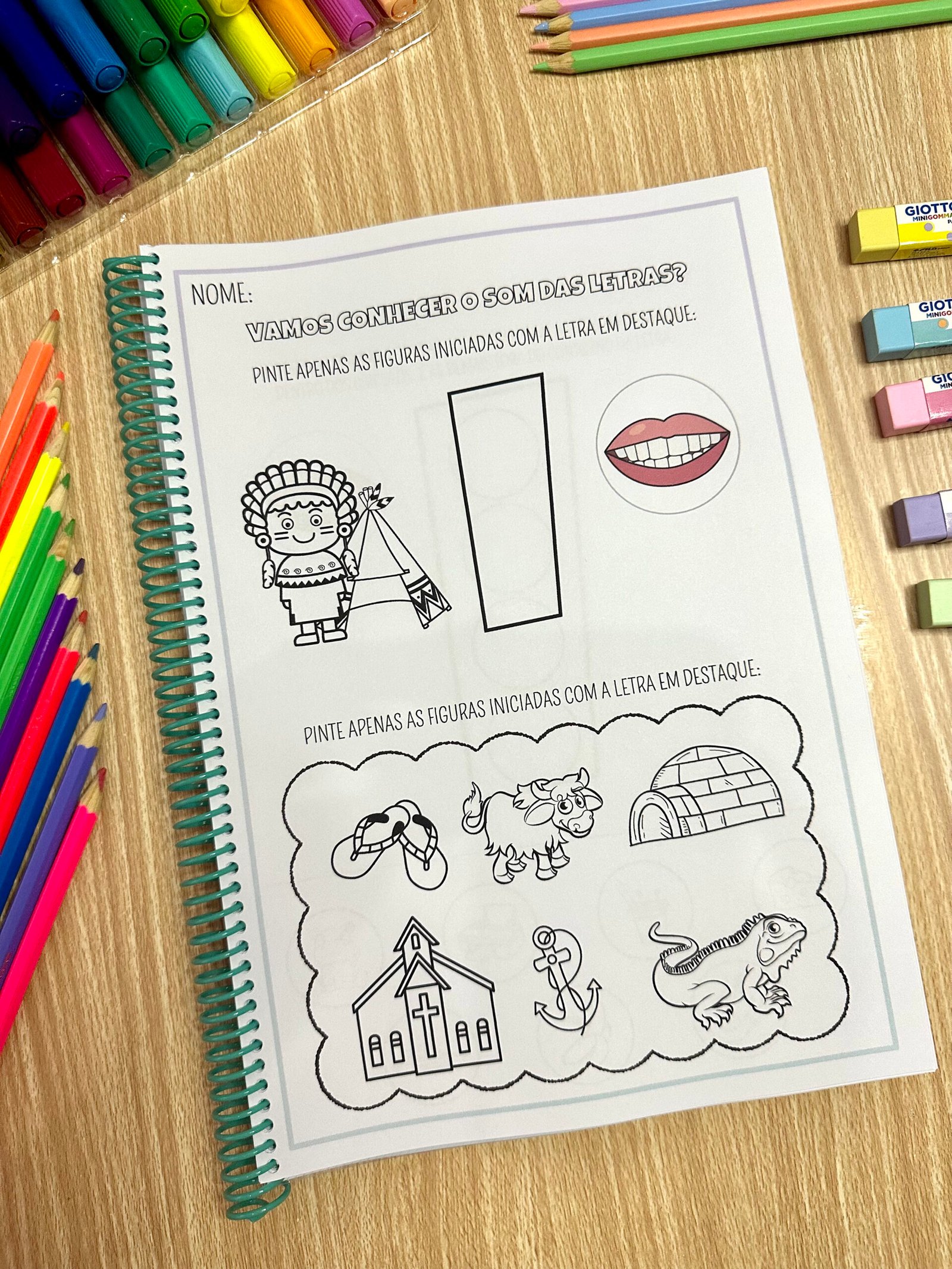As atividades presentes na apostila são variadas e incluem exercícios de correspondência fonema-grafema, traçado de letra,pintura e recorte e colagem. Todas as atividades são pensadaspara estimular a compreensão e a fixação dos sons das letras esuas combinações.