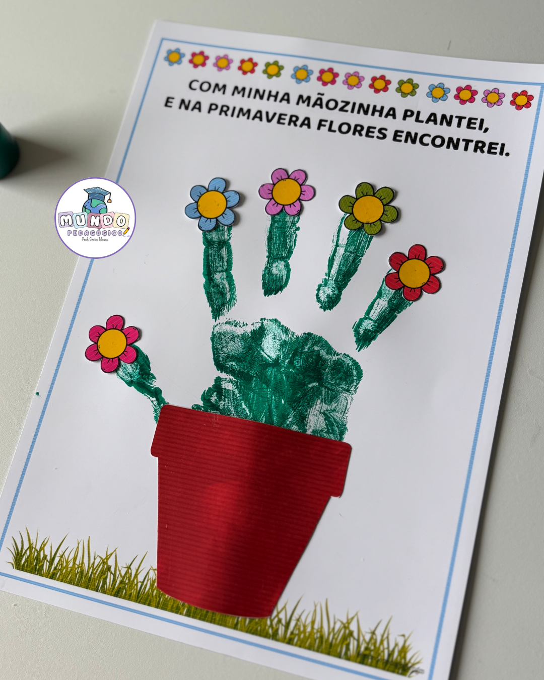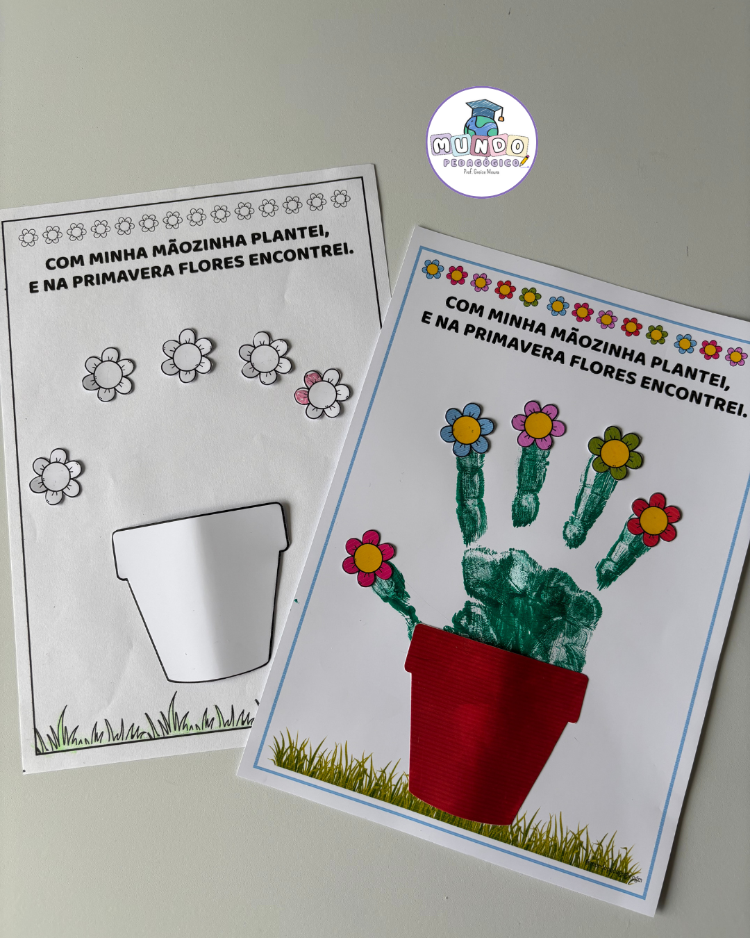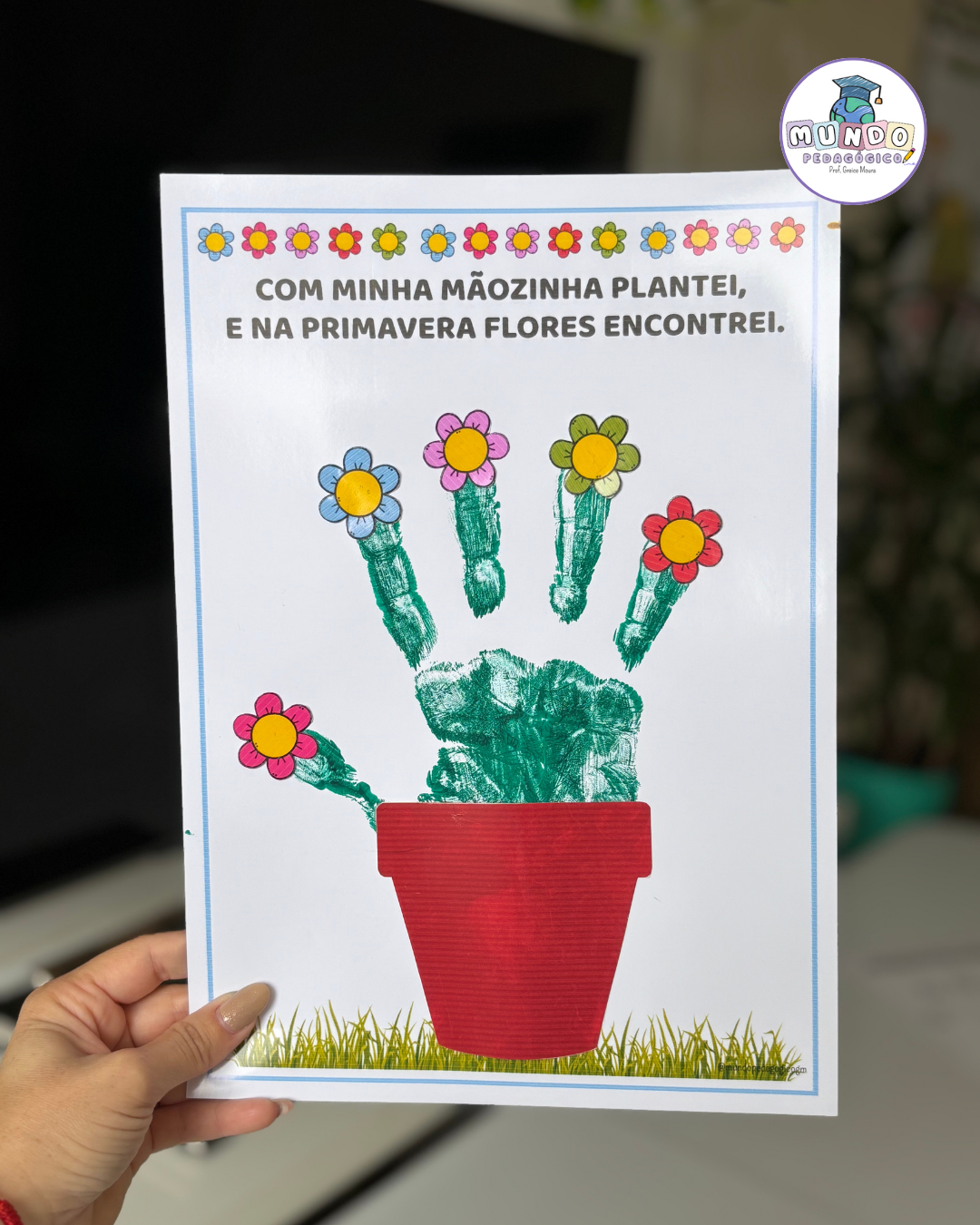 Essa atividade lúdica permite que as crianças utilizem suas mãozinhas para criar flores, trabalhando a criatividade, coordenação motora fina e a percepção das cores.