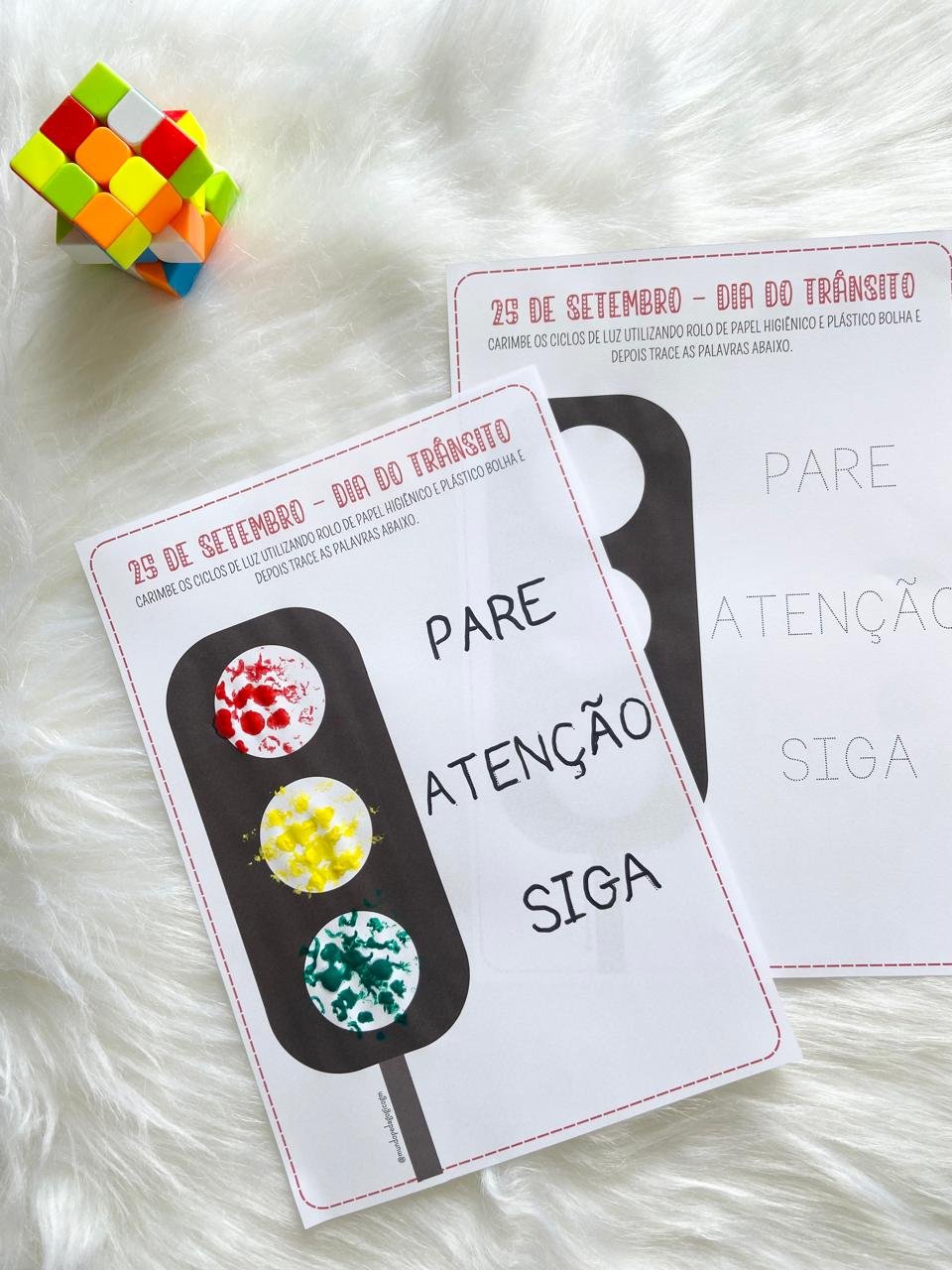 Atividade perfeita para trabalhar noções básicas de segurança no trânsito, regras para pedestres, cores, texturas e coordenação motora.