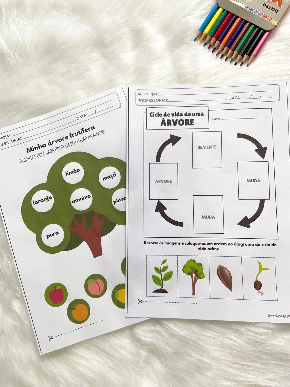 🌳Este material educativo foi desenvolvido especialmente para trabalhar o tema do Dia da Árvore com crianças da Educação Infantil e Alfabetização. Ele oferece uma sequência didática lúdica e interativa, para trabalhar conceitos como artes, numerais, ciclo da vida da árvore, concentração, percepção visual, recorte e colagem entre outros.