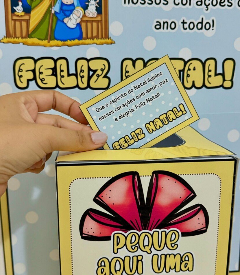Cartaz Mensagens de Natal com caixa e cartões.Medidas do cartaz montado: 35cm x 50cmO material vai ampliado e pronto para impressão. Paraimpressão recomendamos papel de gramatura 180 ou 230, ecola de silicone líquida.