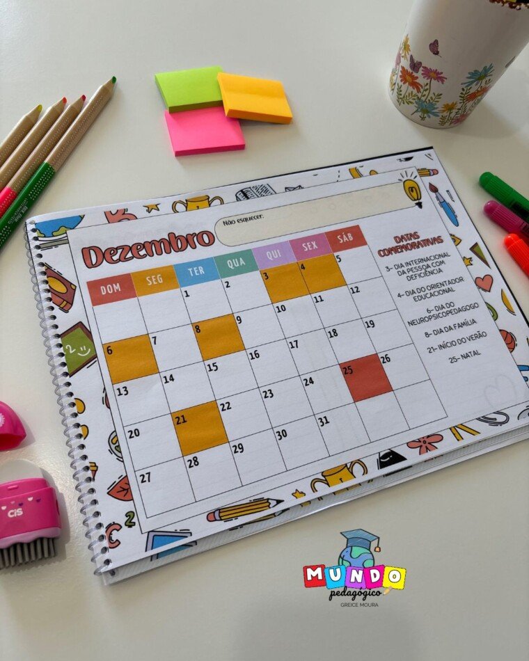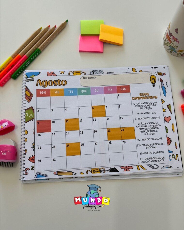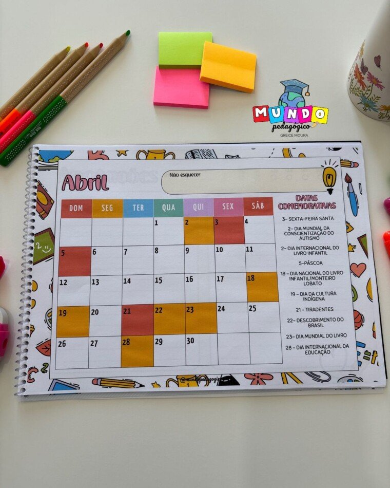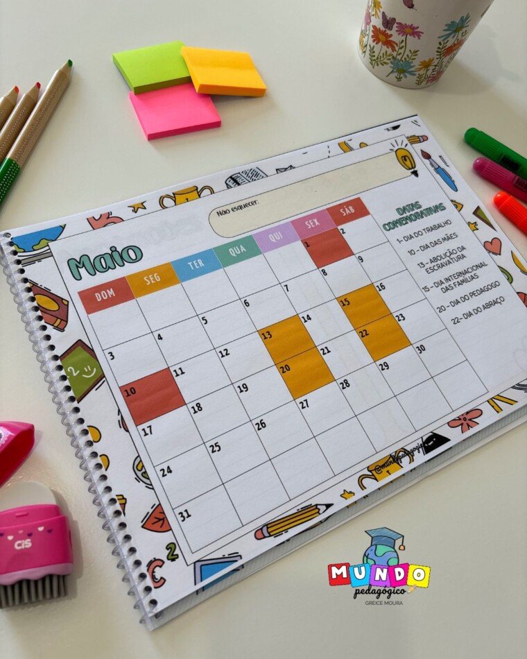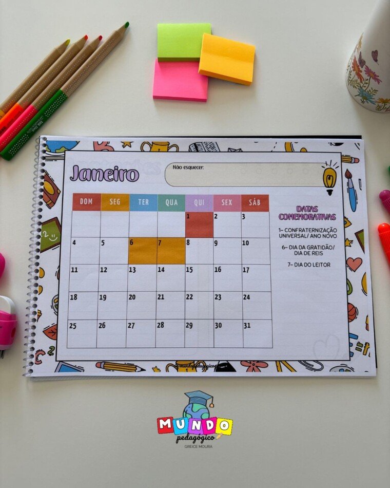 😍 Calendário de Datas Comemorativas de 2026 ideal para ser utilizado no Planejamento Escolar. O material vai com espaço para anotações. Inclui todas as datas comemorativas que são trabalhadas no ambiente escolar, e o calendário de todos os meses.