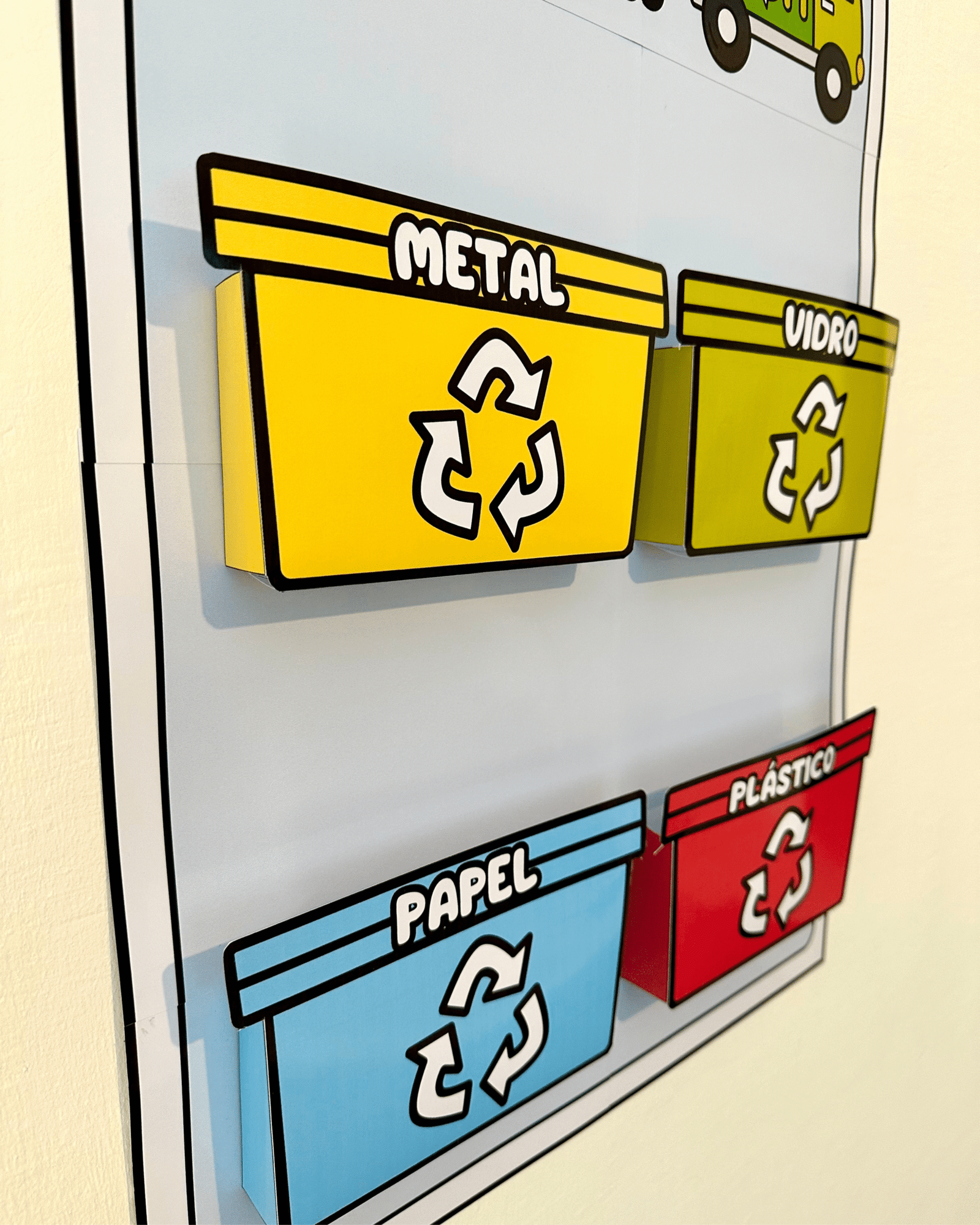 Cartaz Coleta Seletiva para trabalhar o tema Meio Ambiente com as crianças da Educação Infantil e das séries iniciais do Ensino Fundamental.