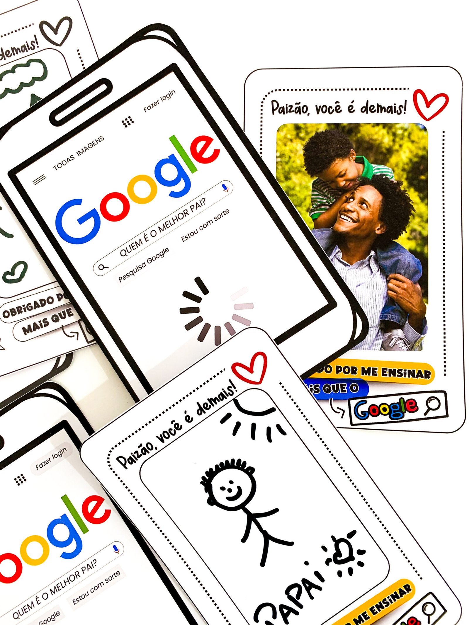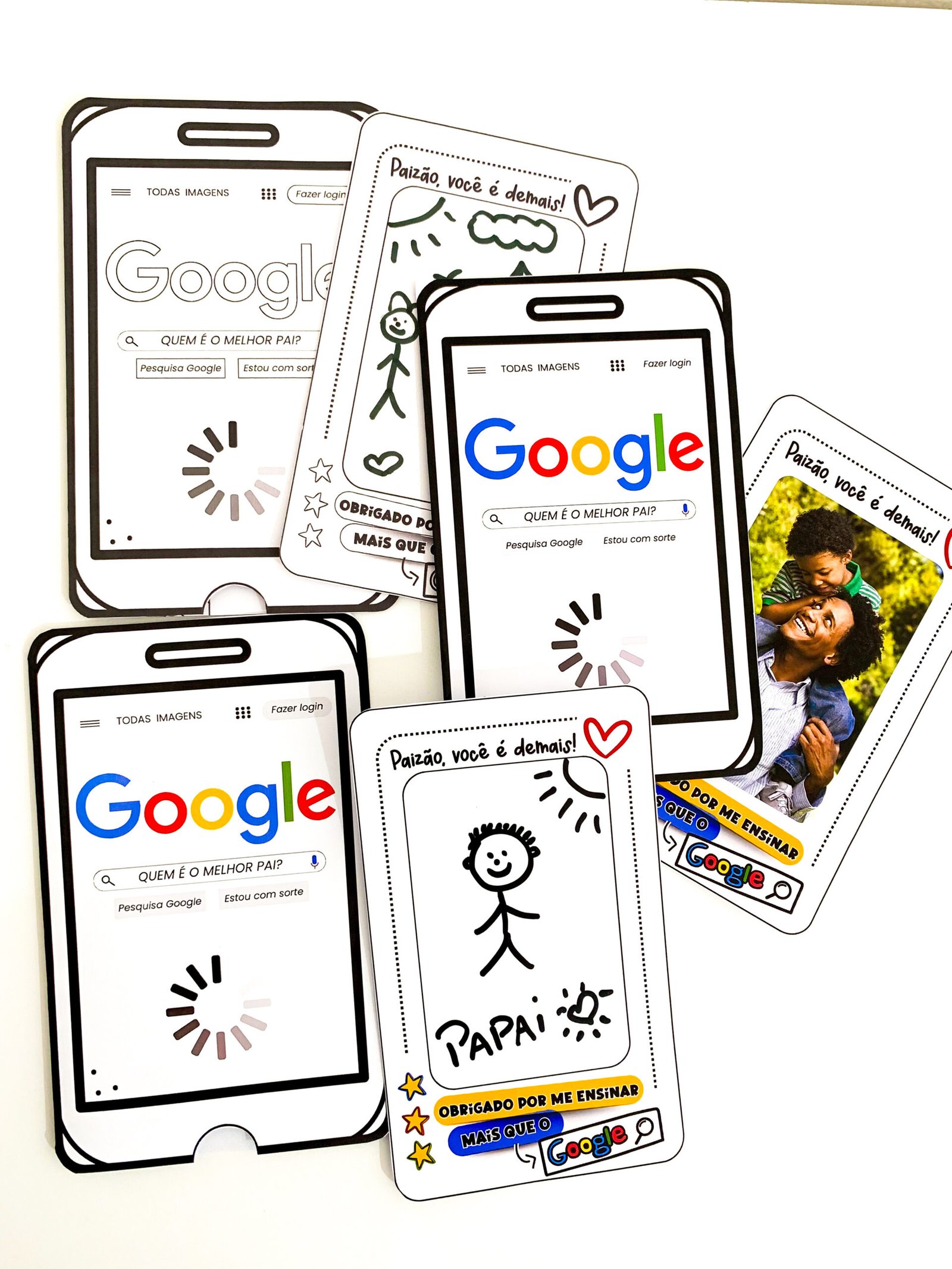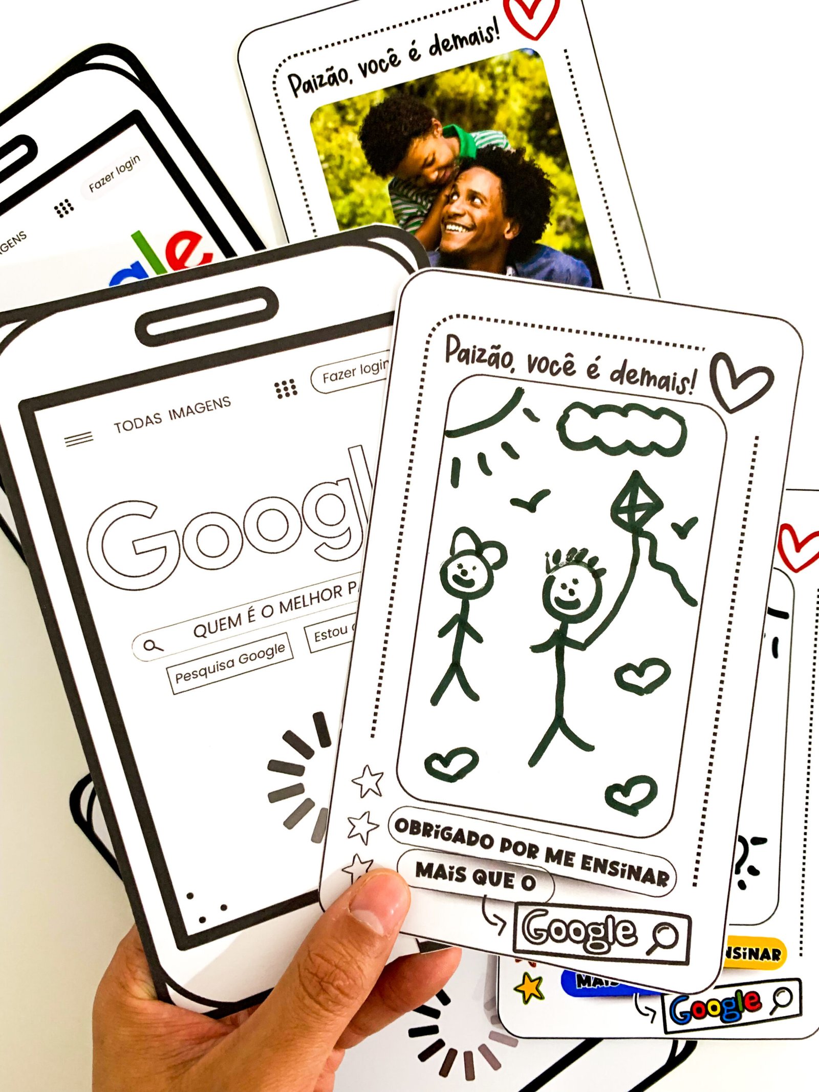 Cartão Dia dos Pais tema Google.O arquivo vai em PDF pronto para impressão, nas opções colorido e para colorir.