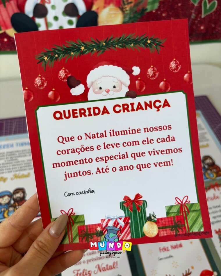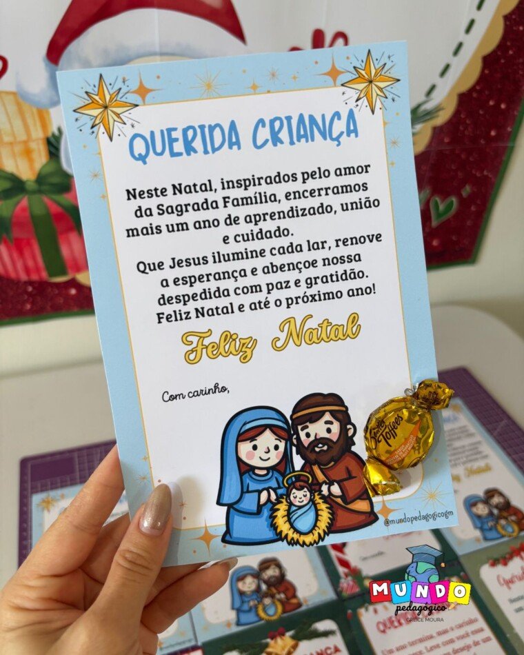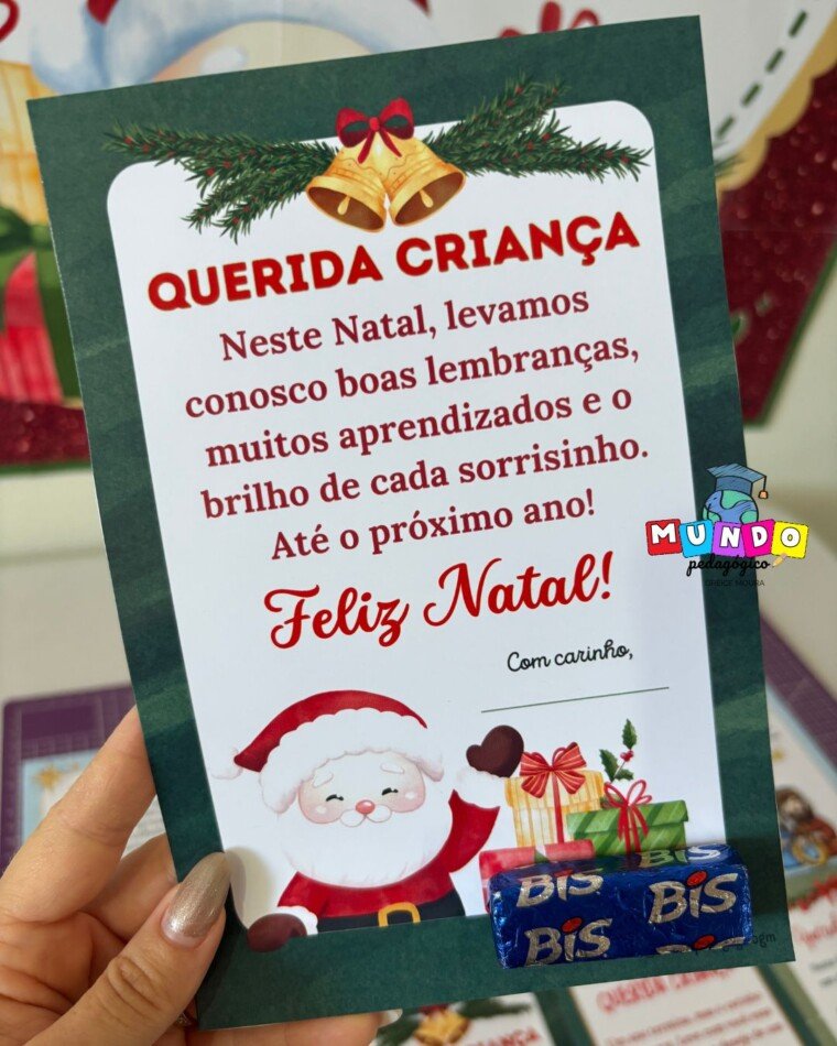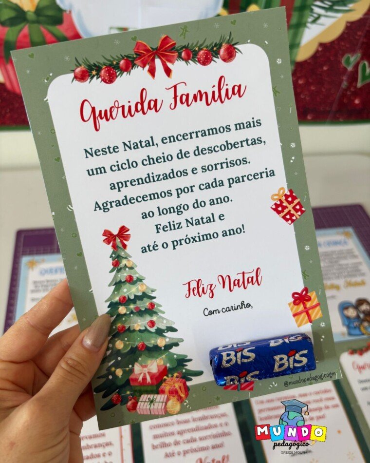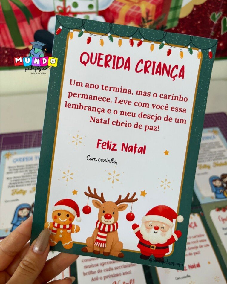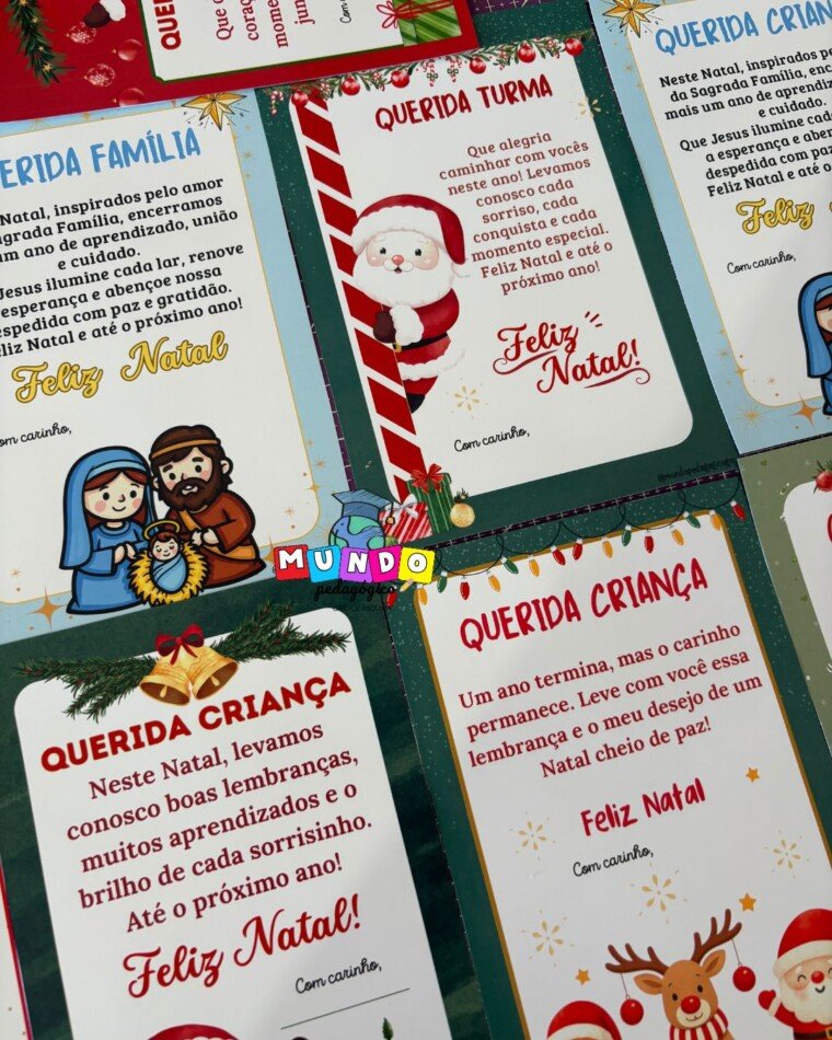 Encante as famílias e finalize o ano letivo com muito carinho! Cada cartão foi criado com ilustrações natalinas delicadas e mensagens curtas de afeto, gratidão e boas lembranças — tudo no clima mágico do Natal para fechar o ano com amor. ✅7 modelos de cartões (2 por folha A4) ✅utilizamos papel fotográfico de 180g 🖨️O arquivo vai em PDF pronto para impressão.