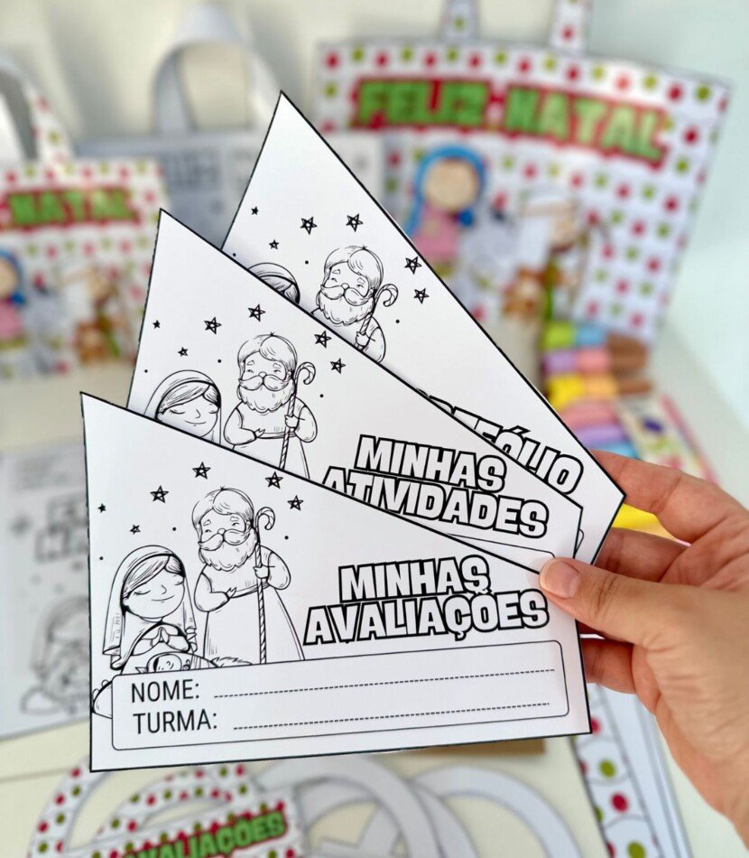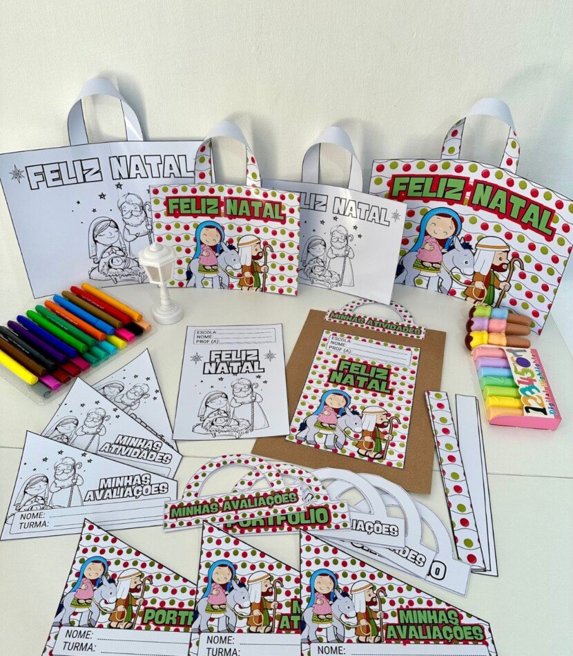 Kit Capas de Atividades tema Natal Cristão. O kit inclui: Capa colorida para envelope  -Capa para colorir para envelope  -Alça para envelope colorida e colorir para Atividades -Alça para envelope colorida e colorir Portfólio  -Alça para envelope colorida e colorir Avaliações  -Sacola colorida tamanho grande -Sacola colorida tamanho pequeno -Sacola para colorir tamanho pequeno
