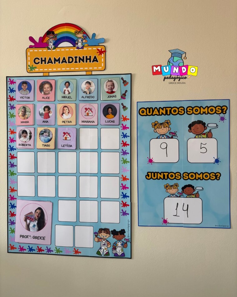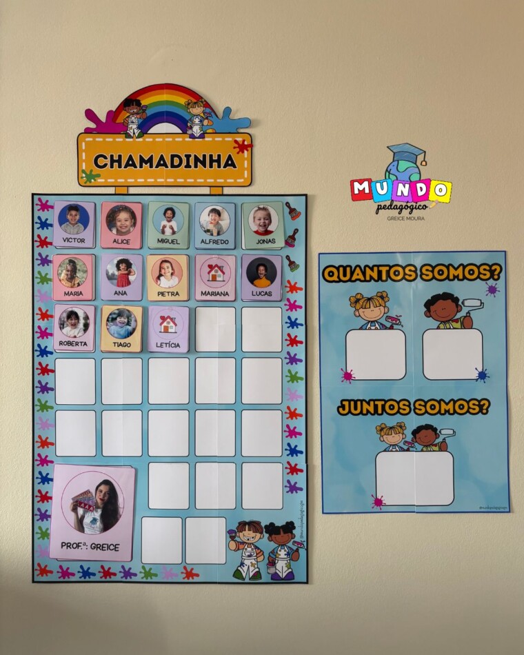 Deixe a rotina escolar ainda mais acolhedora com essa chamadinha personalizada com a foto e o nome dos alunos! Além de contribuir para o reconhecimento da própria imagem e dos colegas, ela favorece a autonomia, o senso de pertencimento e a participação ativa desde o início do dia.