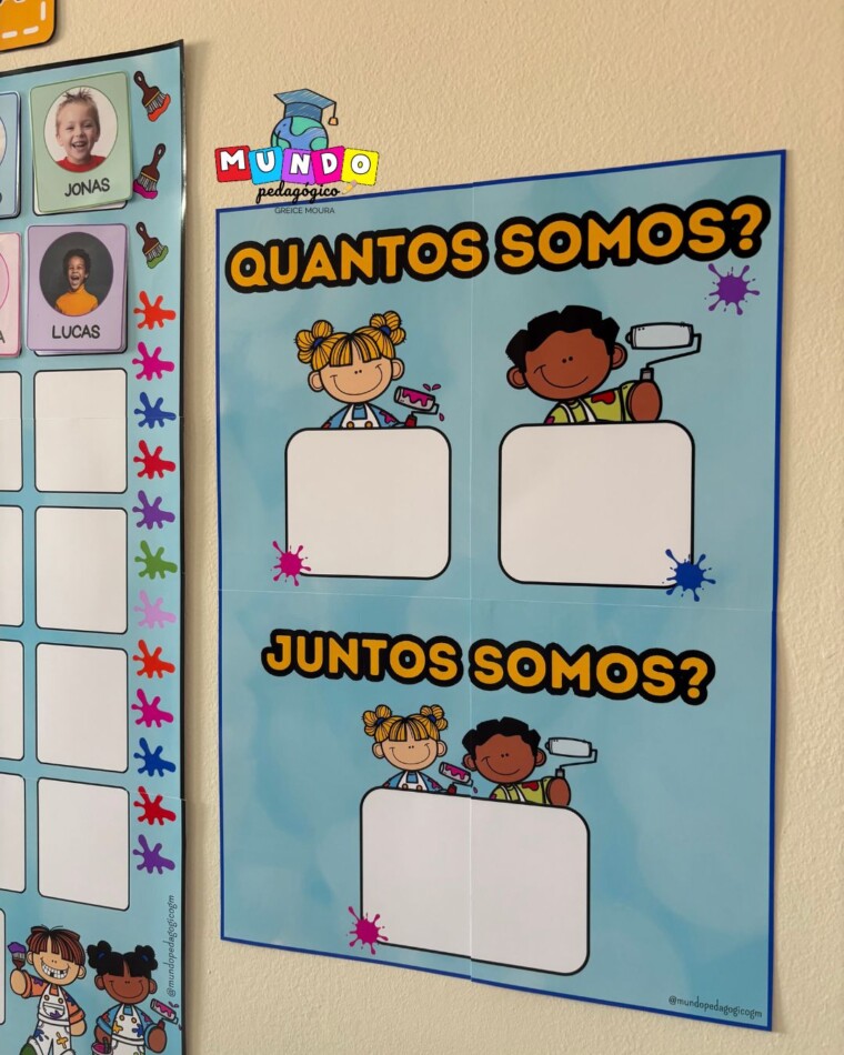 ✅Painel chamadinha completo medidas 53x97cm ( 11 páginas) ✅Painel quantos somos medidas 40×57 (4 páginas) ✅Espaço para 30 fotos ✅Fotos e nomes editáveis no Canva