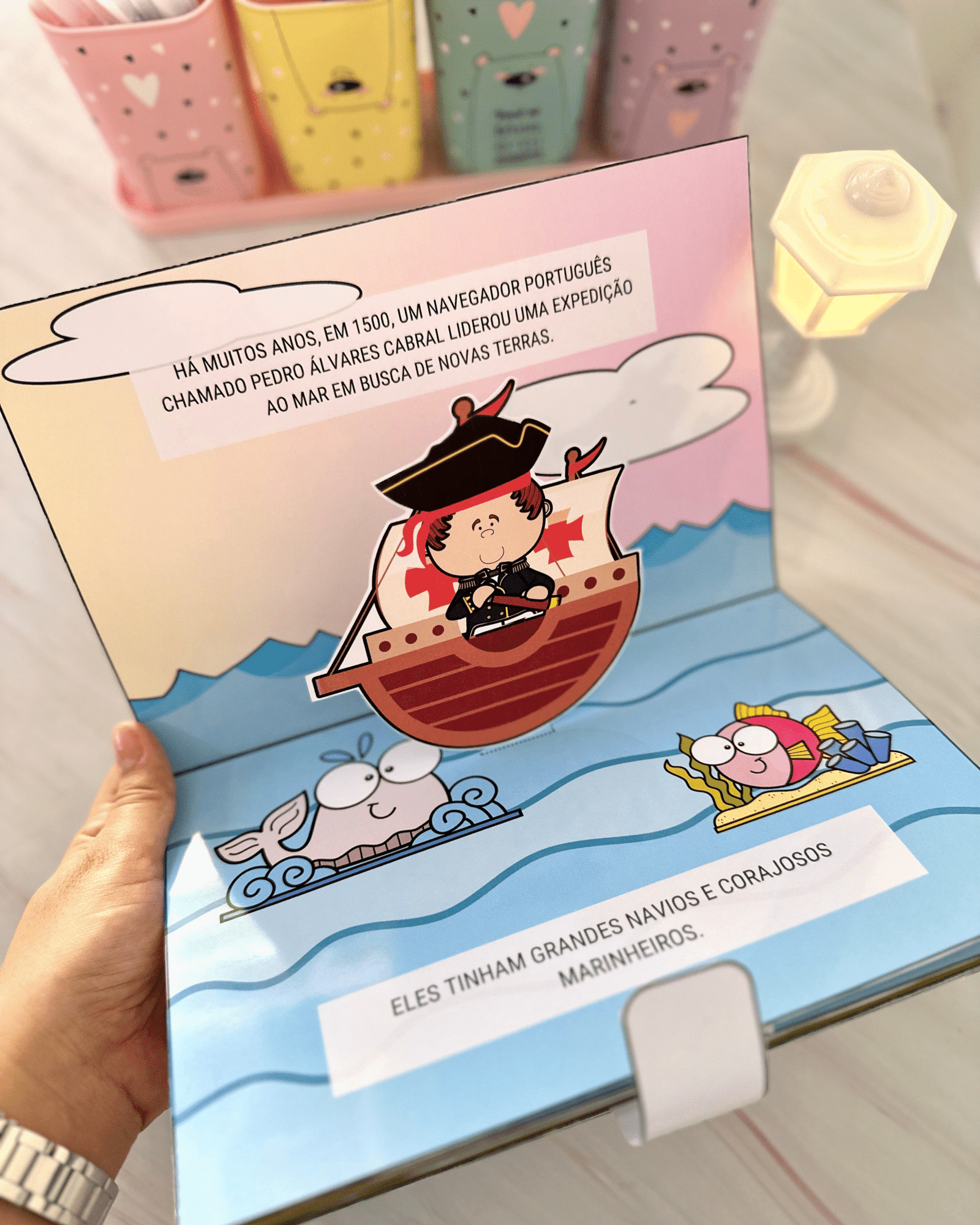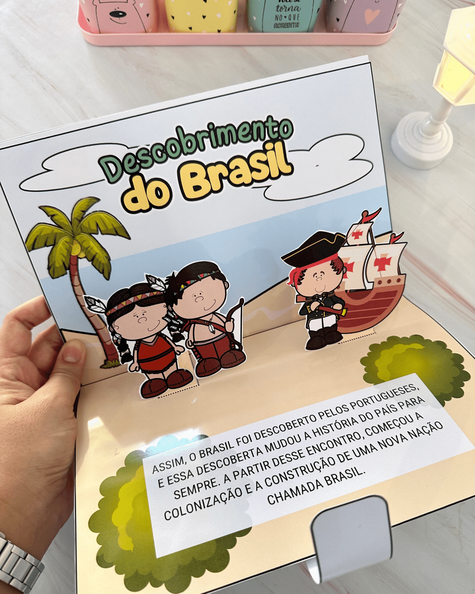 Livro 3D para ensinar a história do Descobrimento do Brasil para crianças da Educação Infantil. O arquivo