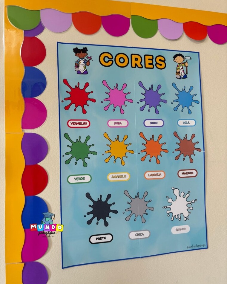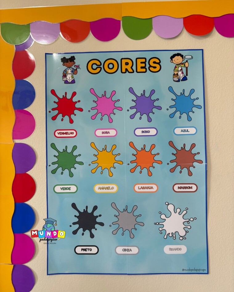 O Painel Pedagógico de Cores foi desenvolvido para auxiliar as crianças no reconhecimento e na identificação das cores de forma lúdica, visual e significativa. Com um design alegre, colorido e personagens fofinhos, o material torna o aprendizado mais envolvente e prazeroso no dia a dia escolar.