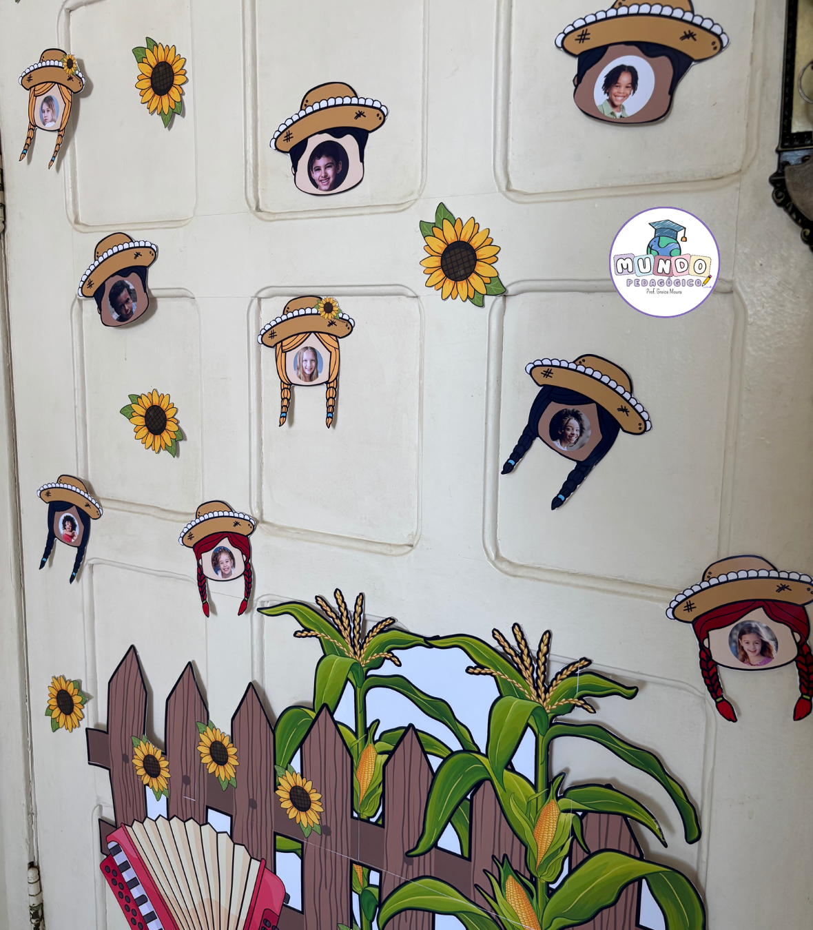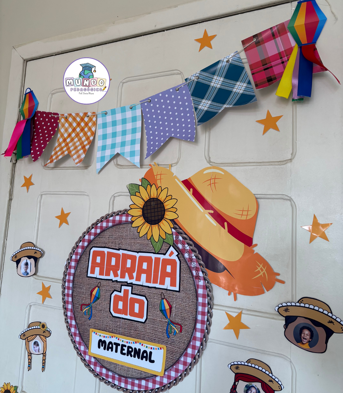 Transforme a entrada da sua sala em um verdadeiro arraiá encantador com este lindo painel de porta temática de Festa Junina! Perfeito para educação infantil e anos iniciais do ensino fundamental, o painel traz elementos coloridos, divertidos e totalmente pensados para estimular a imaginação e o encantamento dos pequenos 😍