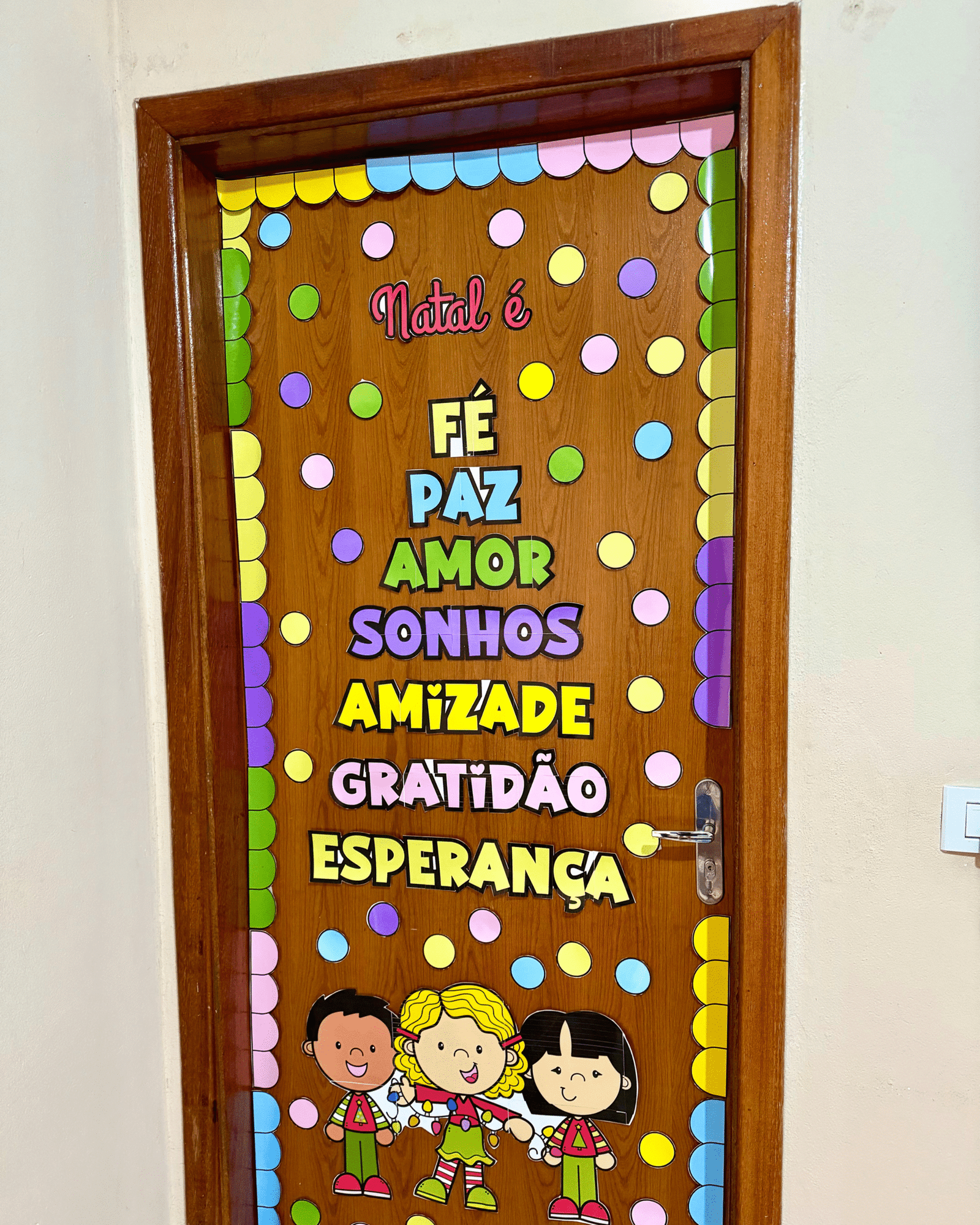 Decoração de porta tema Natal para turmas de Educação Infantil e séries iniciais do Ensino Fundamental. ✅Sugerimos impressão em papel fotográfico de 180g