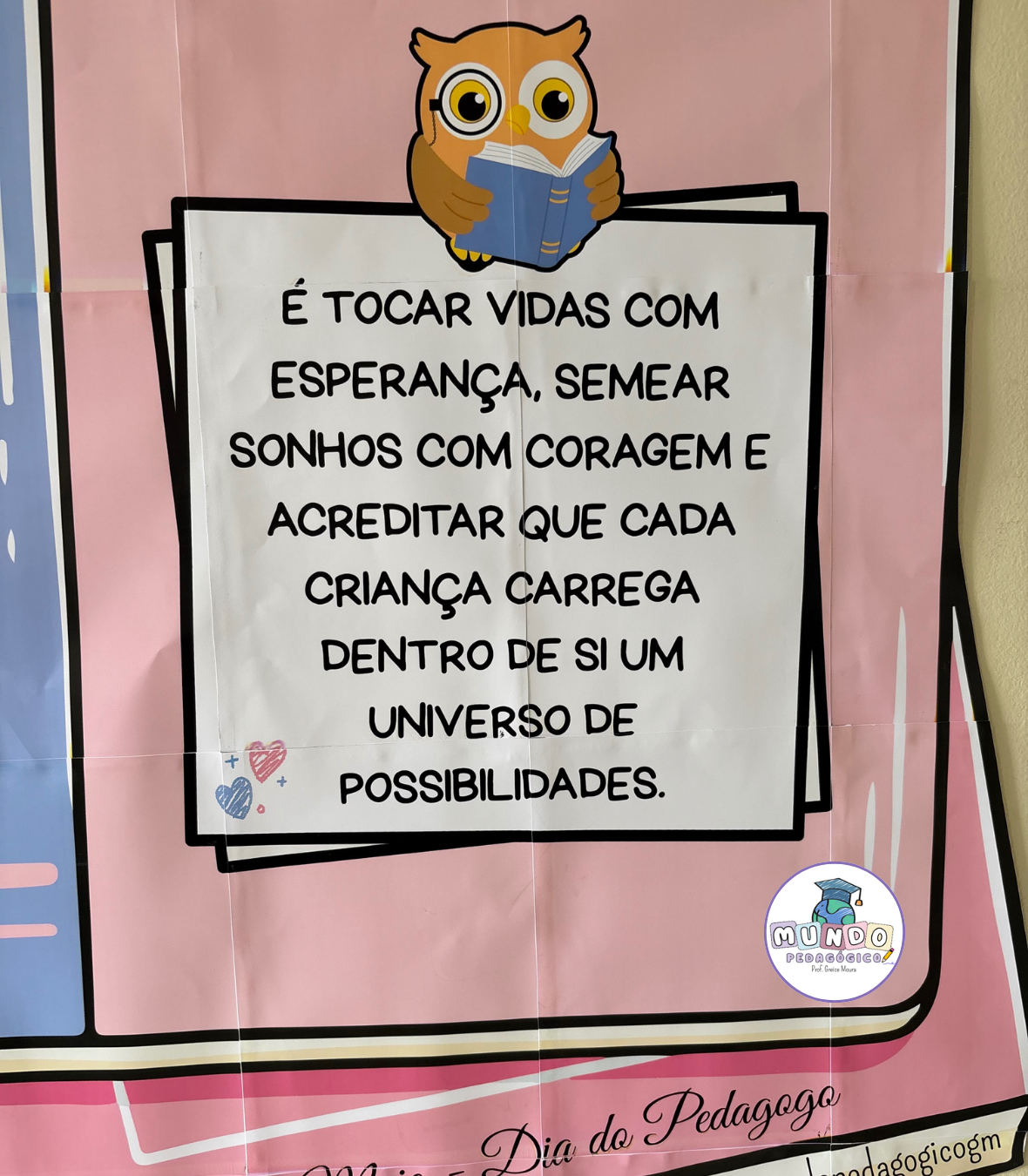Celebre com este lindo painel a dedicação, a sensibilidade e a paixão de quem escolheu transformar vidas por meio da educação. O pedagogo é aquele que ensina com o coração, acolhe com empatia e planta as sementes do conhecimento em cada criança, jovem ou adulto. 🥰