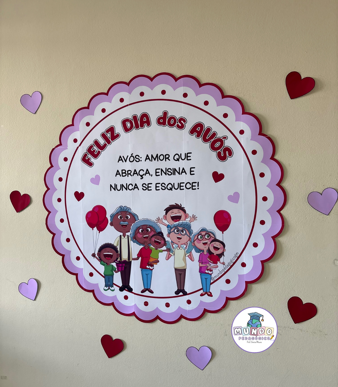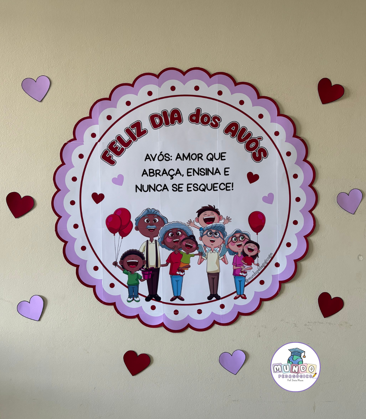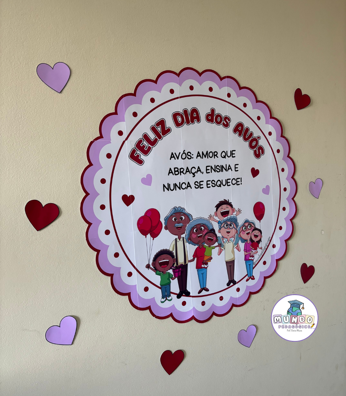 Celebre o amor, o cuidado e a sabedoria dos avós com este lindo painel decorativo! Ideal para salas de aula, recepções escolares ou murais temáticos, o Painel Dia dos Avós traz elementos visuais encantadores que remetem ao carinho entre gerações.
