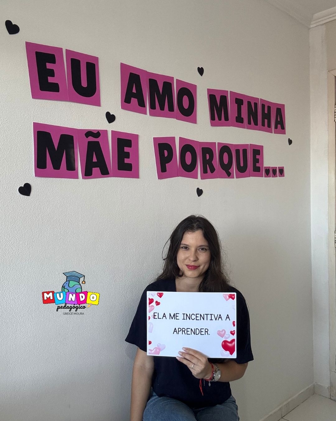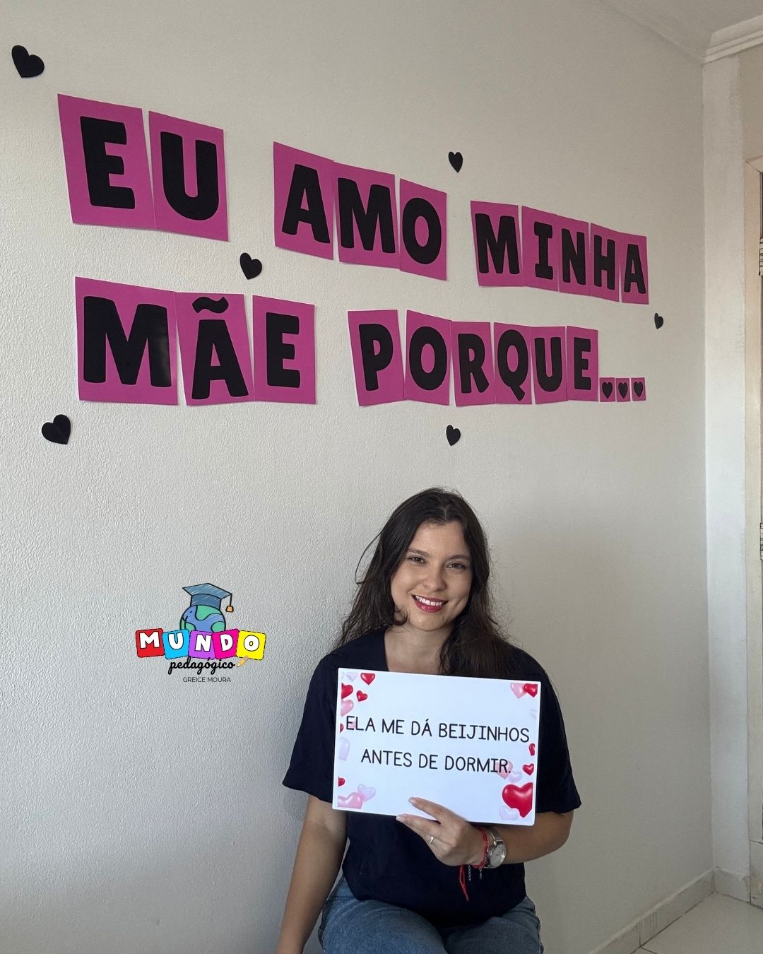 💬 “Eu amo minha mãe porque…” Perfeito para registros fotográficos, vídeos e atividades afetivas em sala de aula.