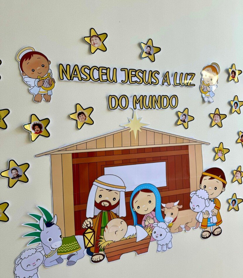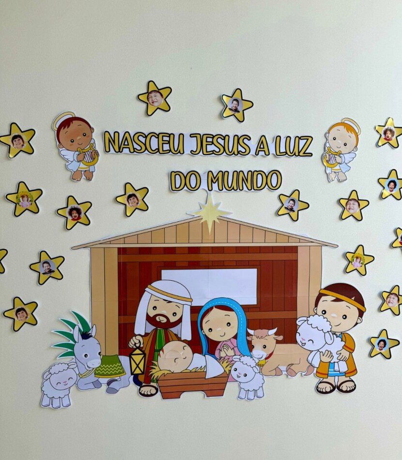 Painel de Natal com Presépio para trabalhar o tema com crianças da Educação Infantil e séries iniciais do Ensino Fundamental. Ao adquirir o material você recebe link para adicionar as fotos das crianças e também o vídeo tutorial de edição.