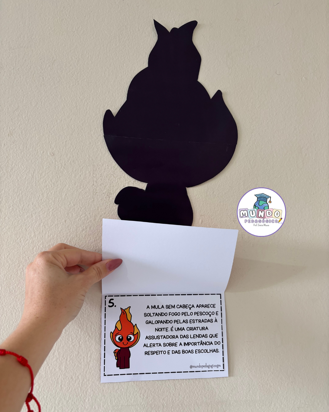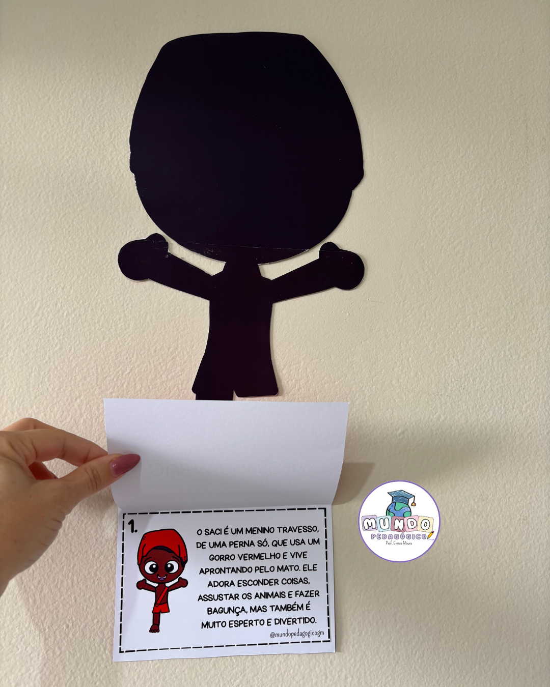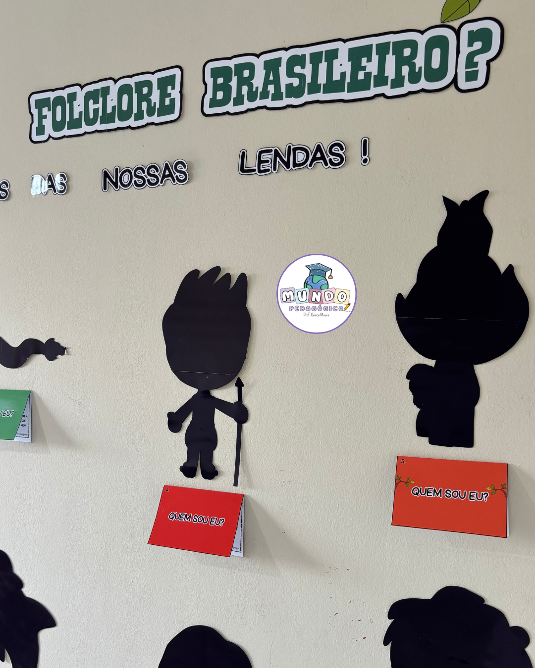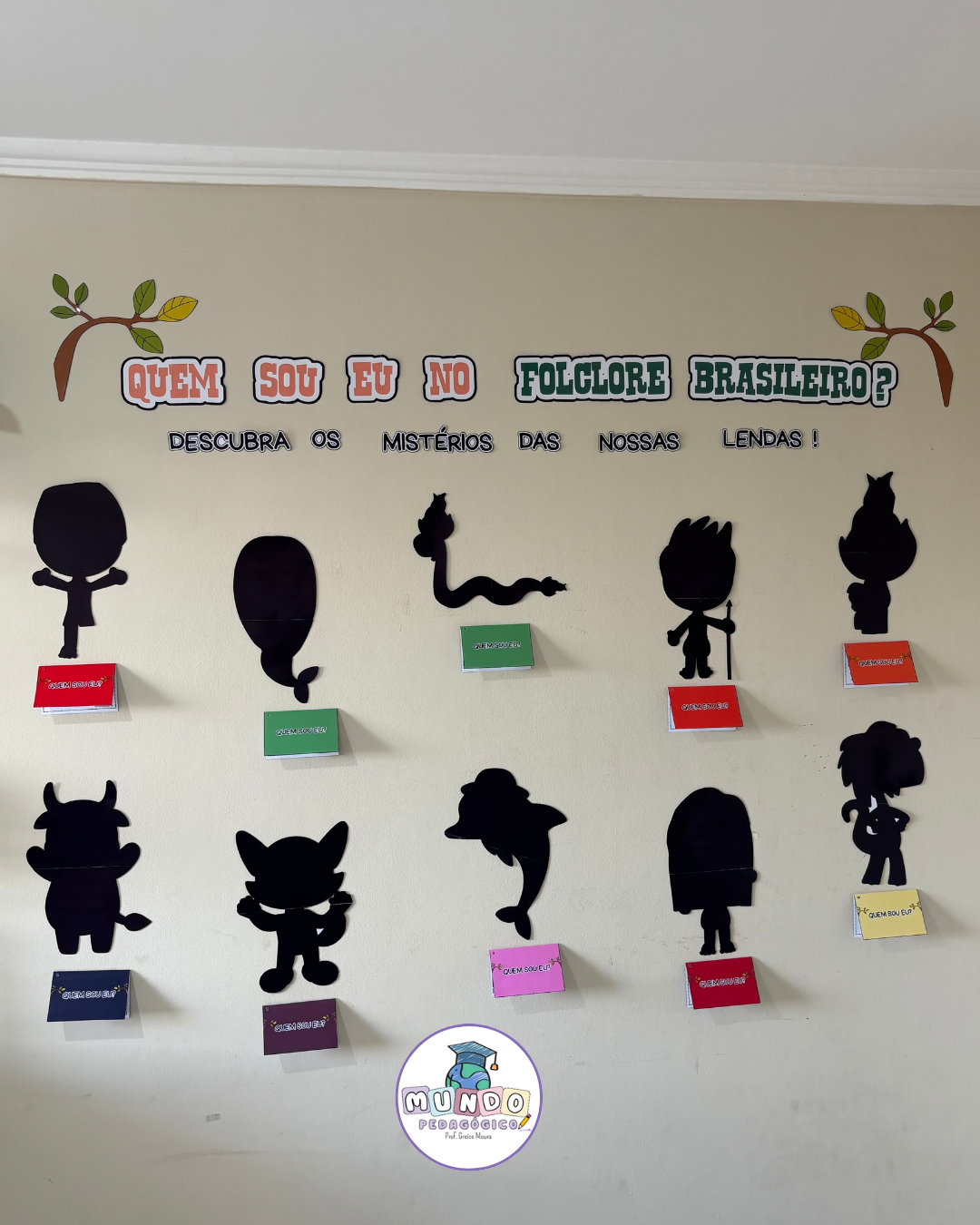 O Painel Interativo “Quem Sou Eu no Folclore Brasileiro?” foi desenvolvido especialmente para trabalhar as lendas do folclore de forma envolvente, utilizando sombras misteriosas, adivinhas rimadas, atividades de colorir e momento de interação oral com a turma.