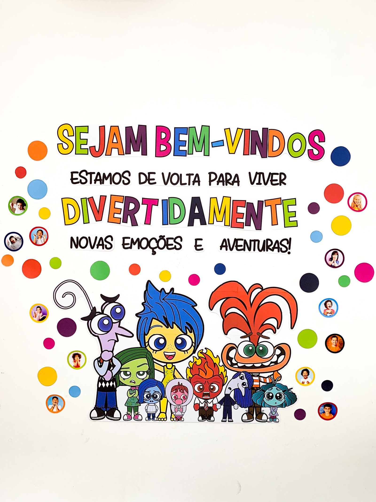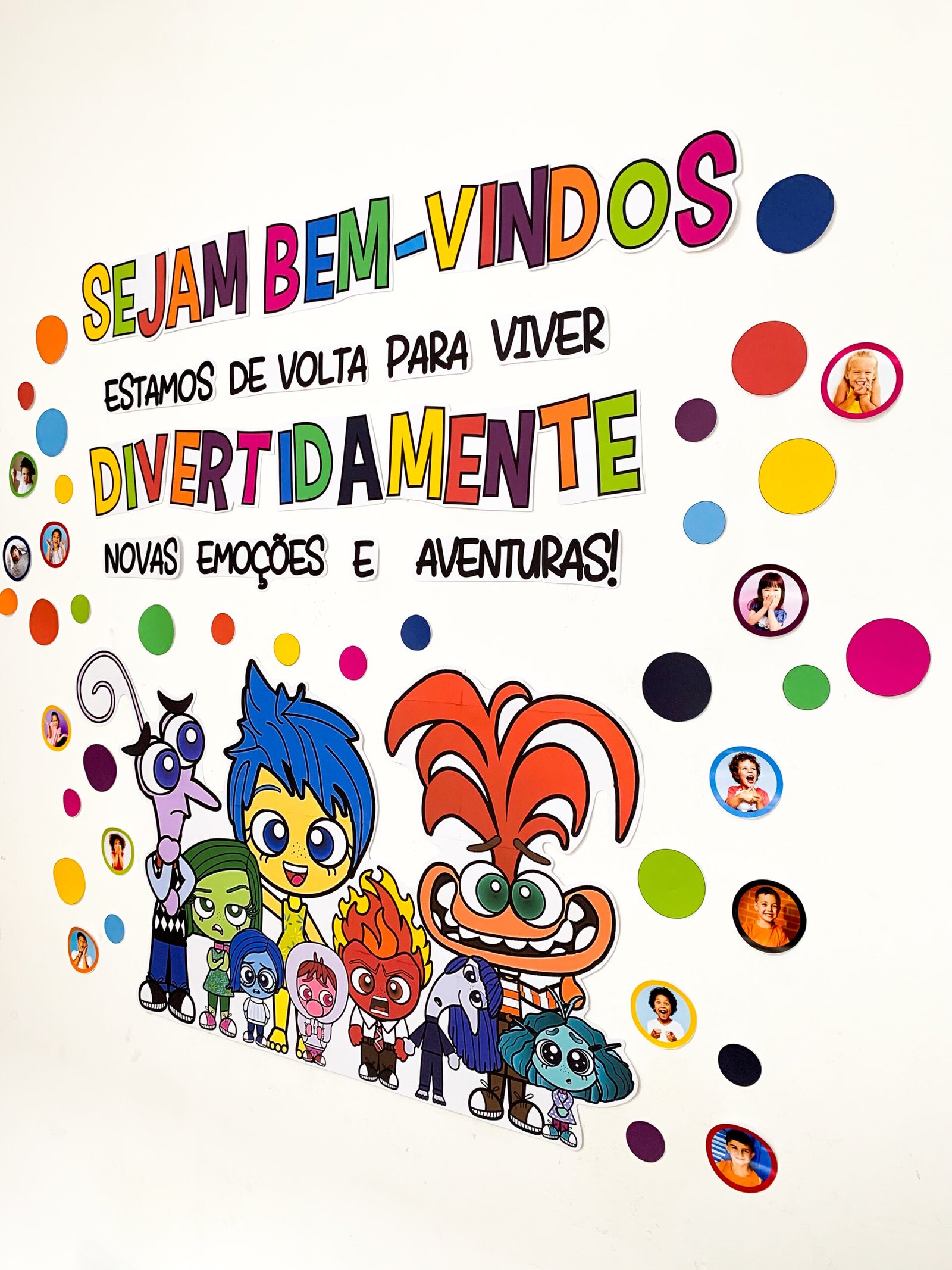 Painel Volta às Aulas Divertidamente para recepcionar as crianças da Educação Infantil e das séries iniciais do Ensino Fundamental.