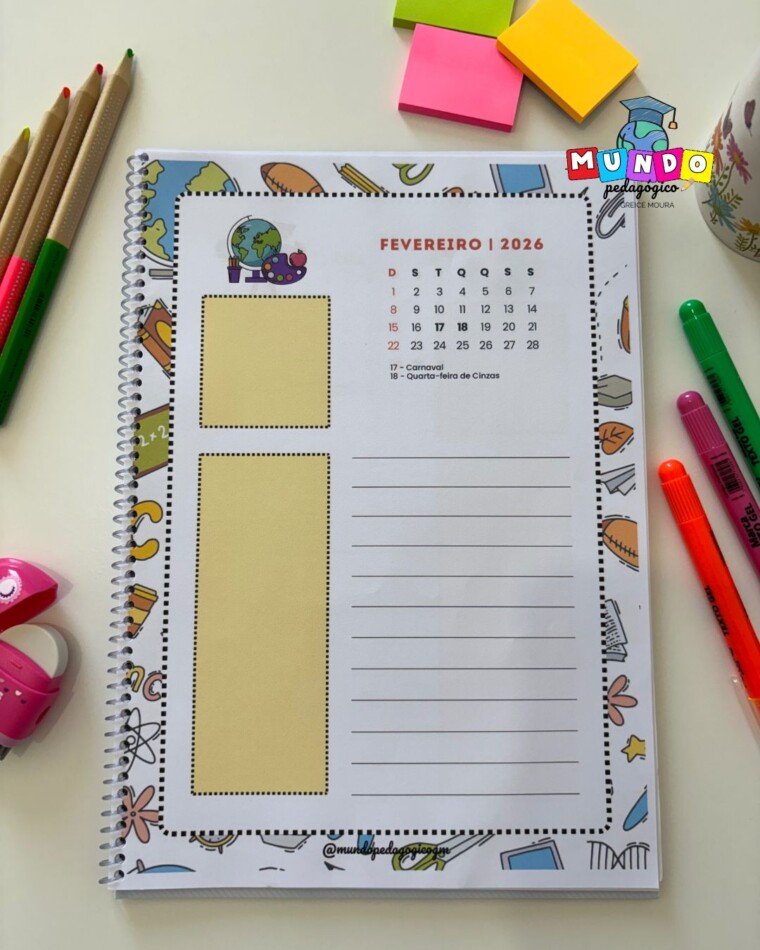 Planner da Professora/Professor 2026 com mais de 100 páginas.