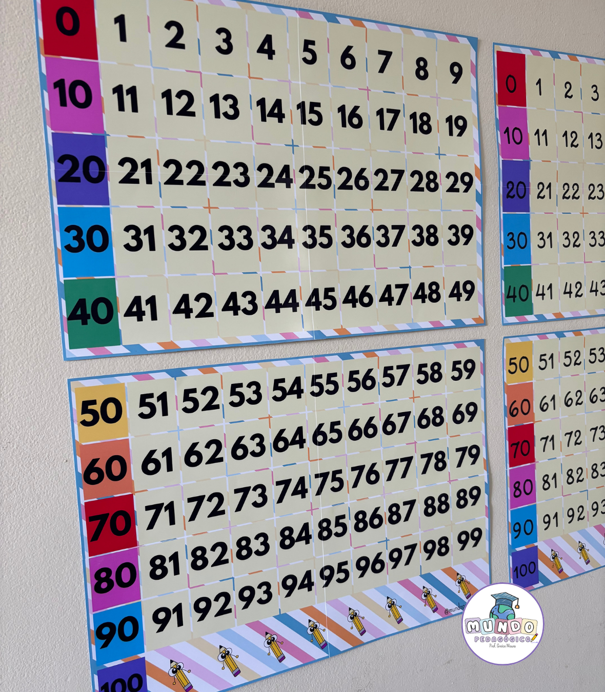 Ideal para uso em sala de aula ou em atividades de reforço escolar, o Quadro Numérico de 0 a 100 é uma ferramenta visual que auxilia no desenvolvimento do raciocínio lógico, no reconhecimento dos números e na construção do sistema decimal.