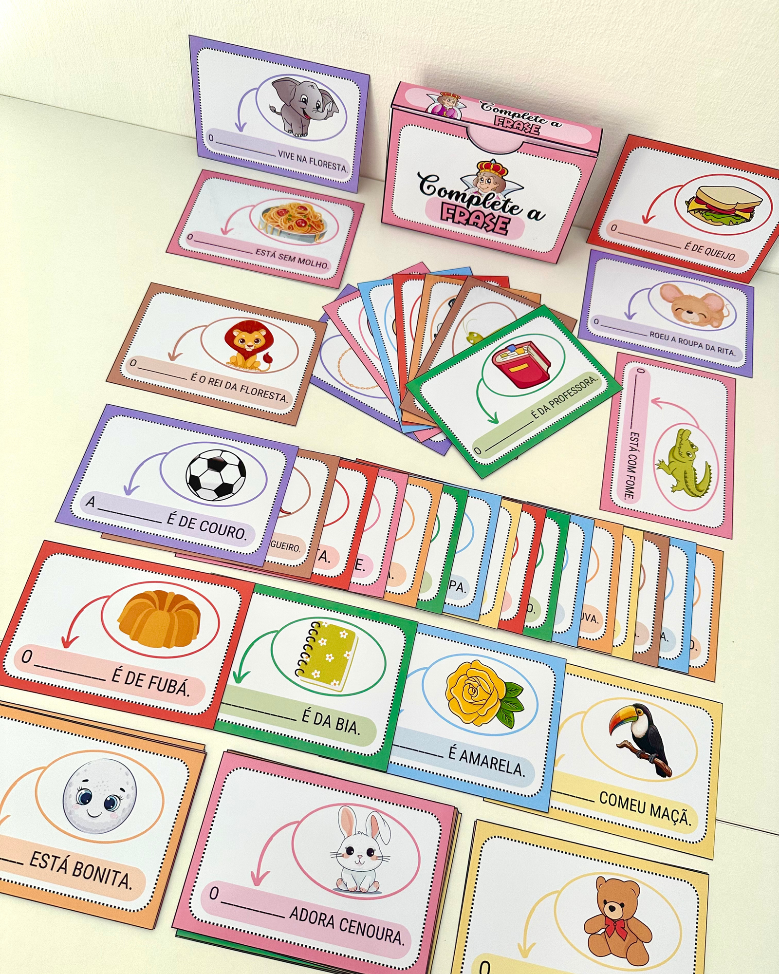 Recurso Complete a Frase para trabalhar leitura de frases e escrita de palavras com