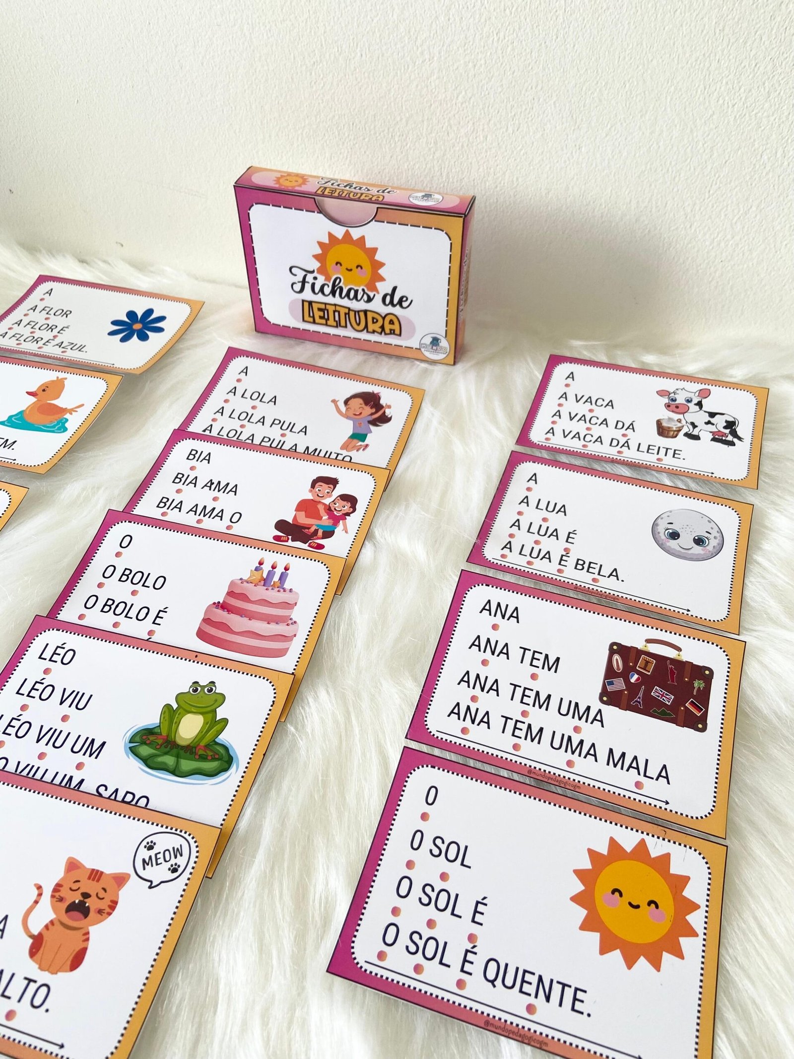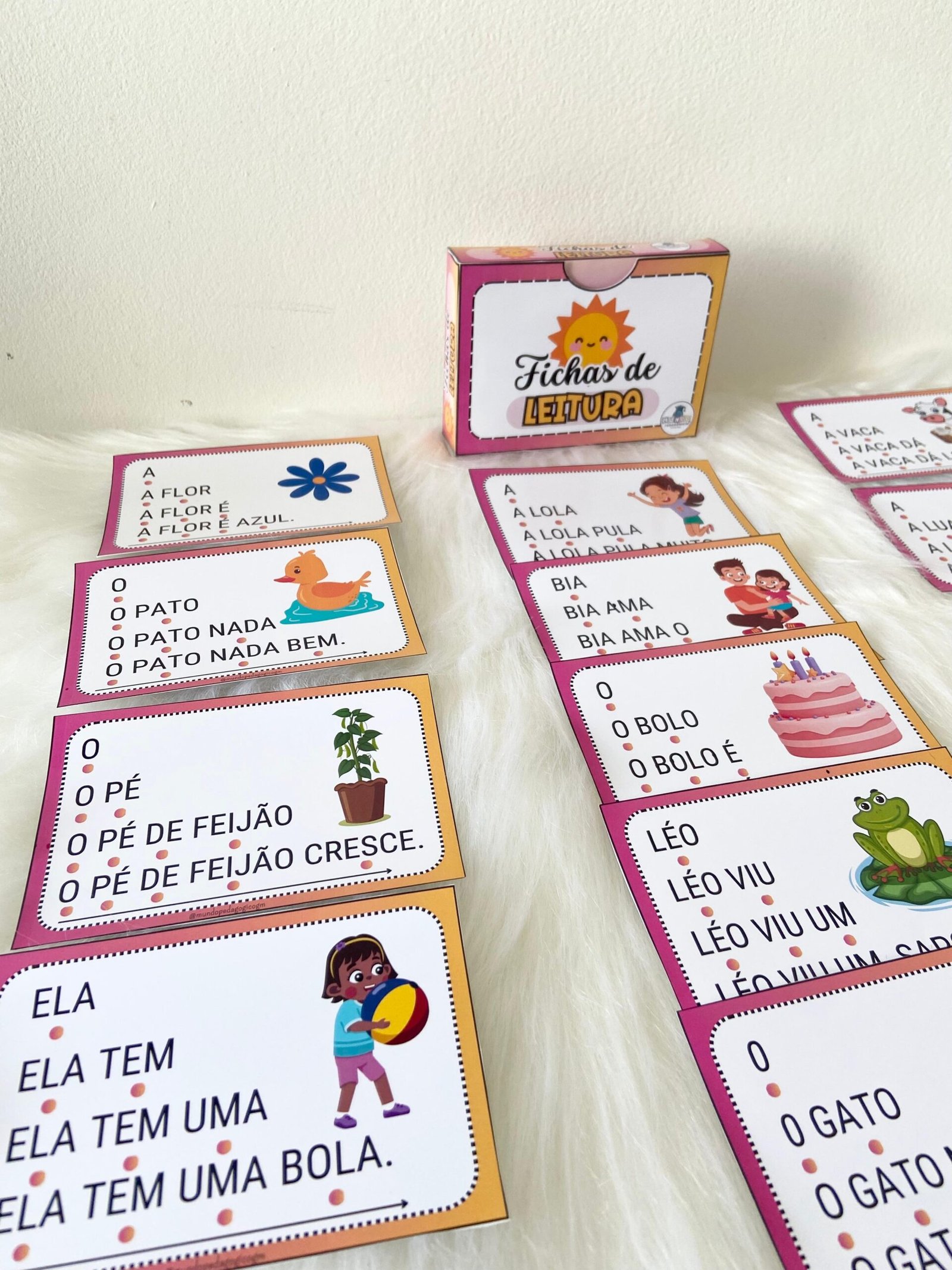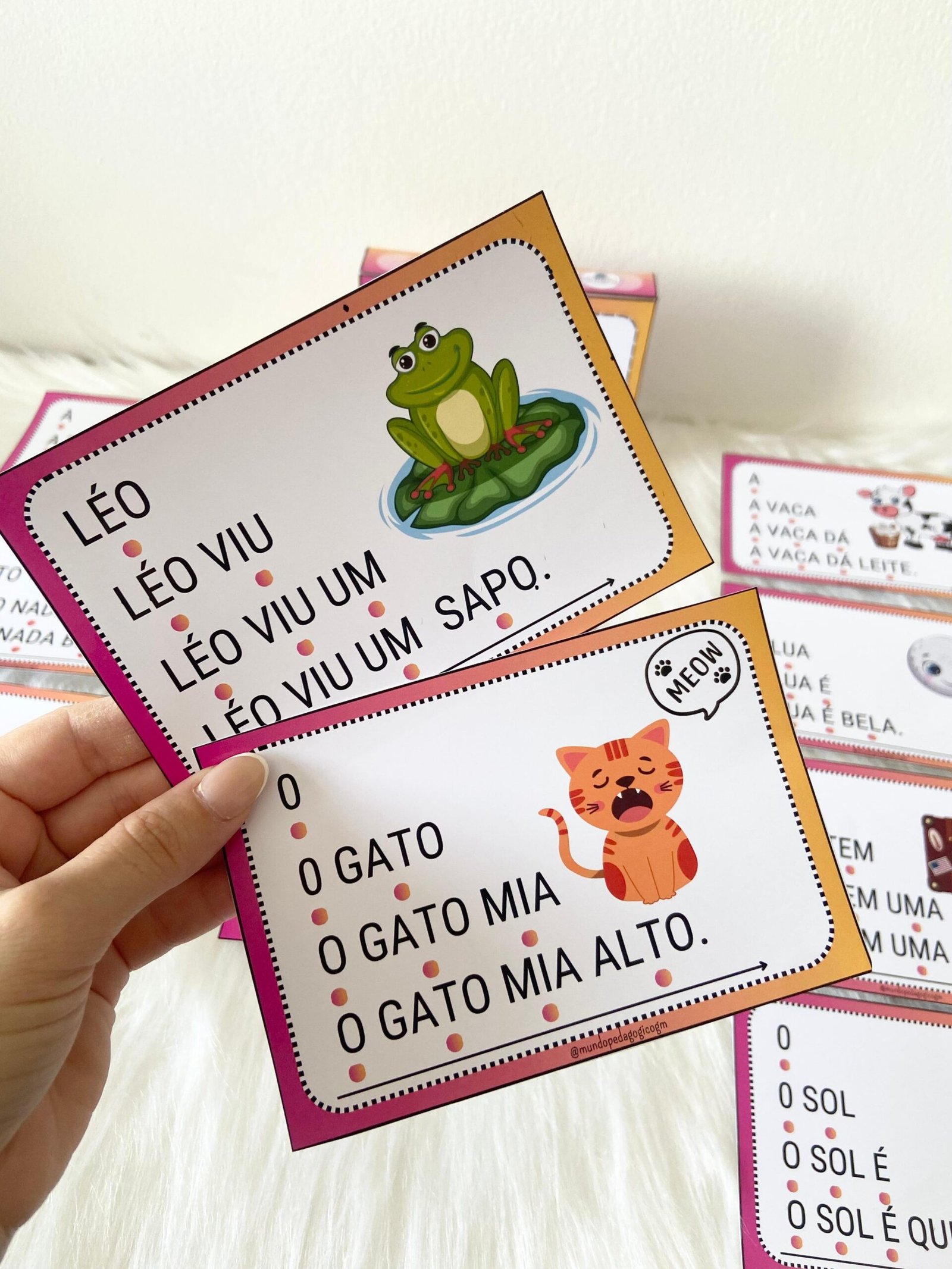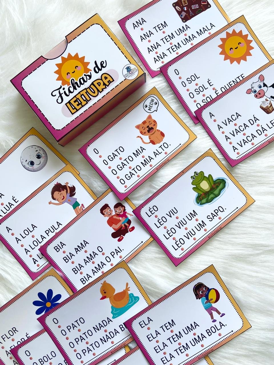 Este material possui 52 fichas com frases curtas e simples para prática de leitura e interpretação, auxiliando no aprendizado de sílabas simples. Para você trabalhar com as crianças em fase de alfabetização.