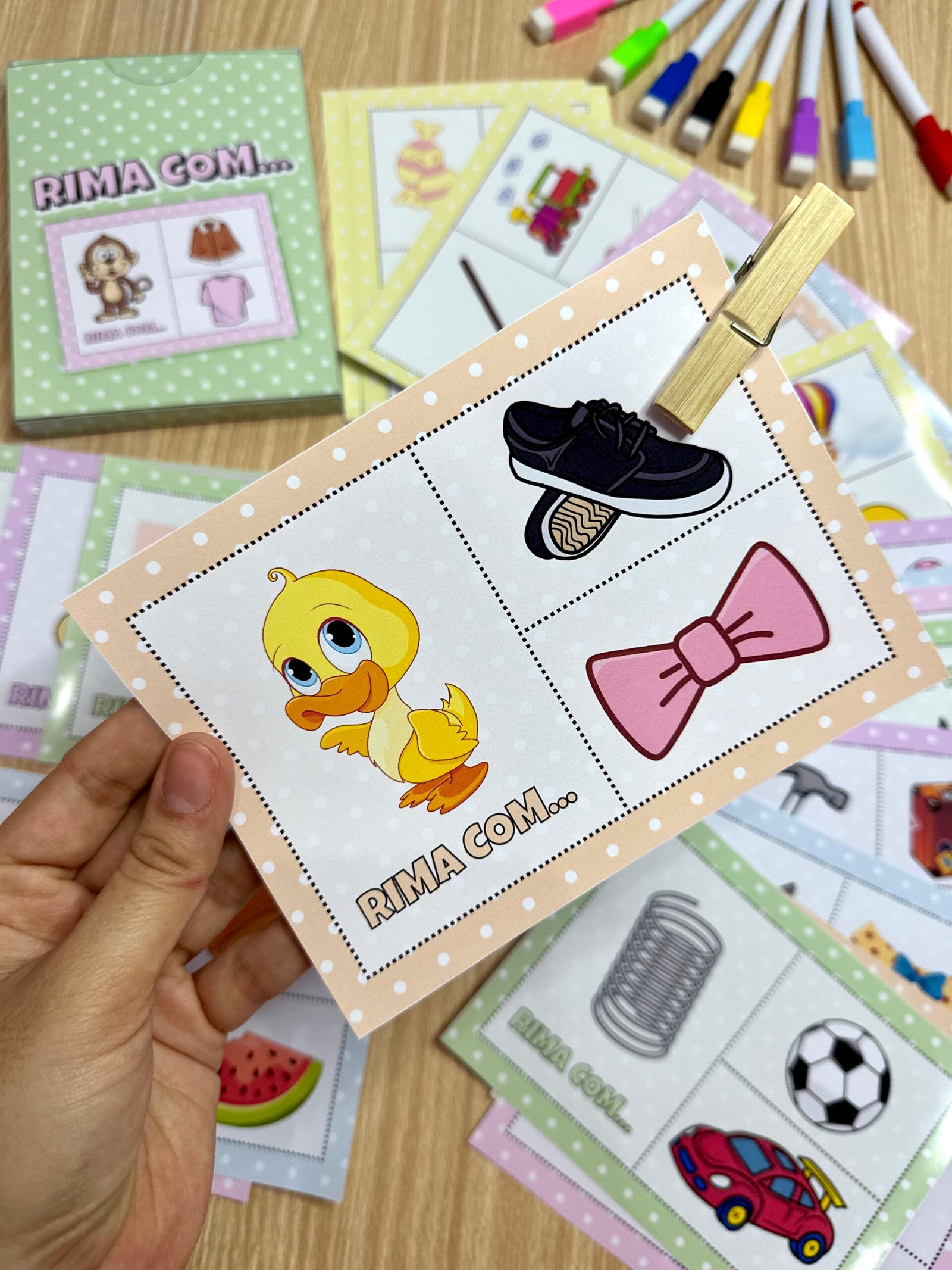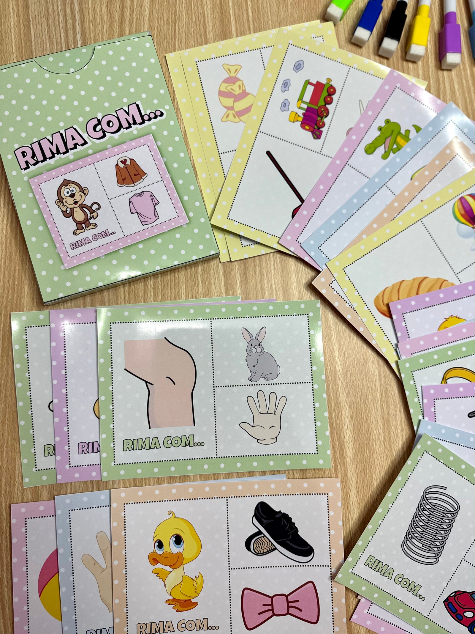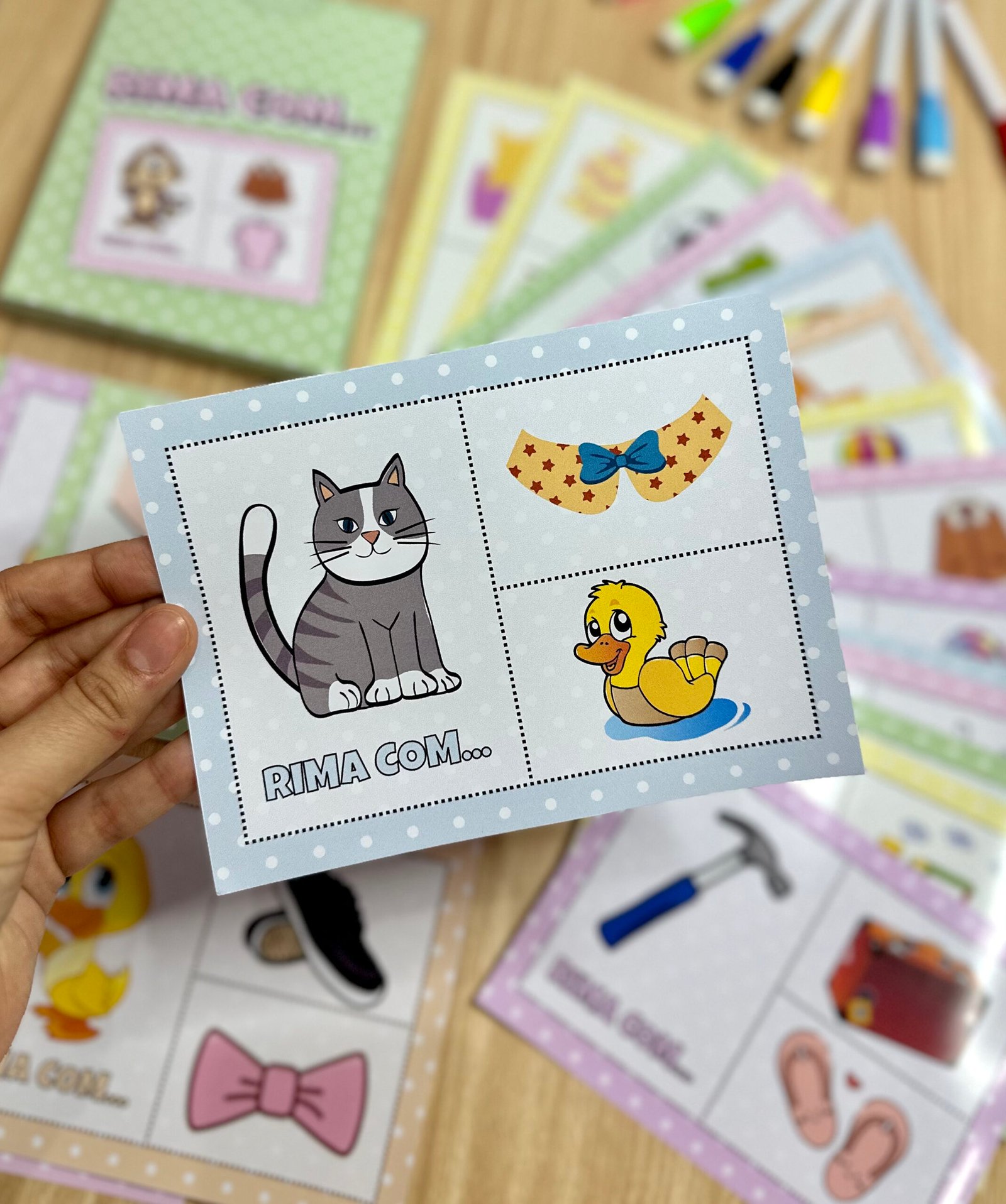 Arquivo ideal para trabalhar rima com crianças a partir de 3 anos.São 22 fichas com rimas para a criança identificar e fazer amarcação. As rimas são excelentes para ajudar as crianças adesenvolverem habilidades linguísticas iniciais. Isso porqueaumentam a consciência de ortografia e de fonemas, que são essencialmente os sons que compõem as palavras.