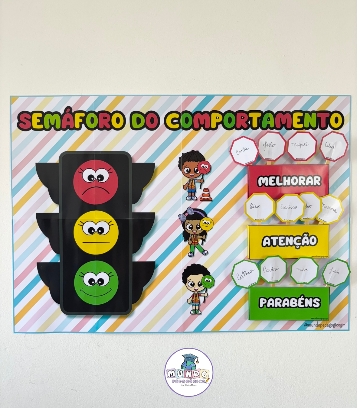 O objetivo desse recurso é ajudar as crianças a compreenderem e regularem suas atitudes de forma positiva e motivadora. Através da associação das cores do semáforo (verde, amarelo e vermelho), os alunos conseguem visualizar e refletir sobre suas ações ao longo do dia, promovendo o autocontrole e a responsabilidade.