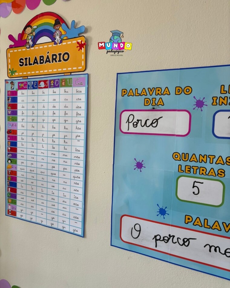 ✅Silabário interativo 53x97cm (6 páginas) + palavra do dia 71x50cm (8 páginas) ✅acompanha arquivo para lata e fichas para sorteio das palavras. Todos os arquivos vão em tamanho A4 e ampliado